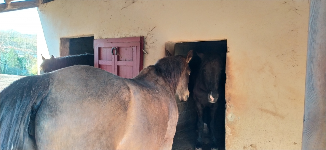 | Dire merci | Hello ! Rien de foufou ici, les chevaux ont attaqué la mue et tout va bien. La nouvelle Adadas d'O est commandée, en nouvelle taille donc...moi qui pensais partir sur du plus petit ( la chaussure tournait) je pars finalement sur une taille de plus et avec une forme plus arrondie que ronde...alors on verra à la réception ! L'herbe fait une poussée de ouf, les chevaux iront donc au pré d'ici la fin du mois ! |