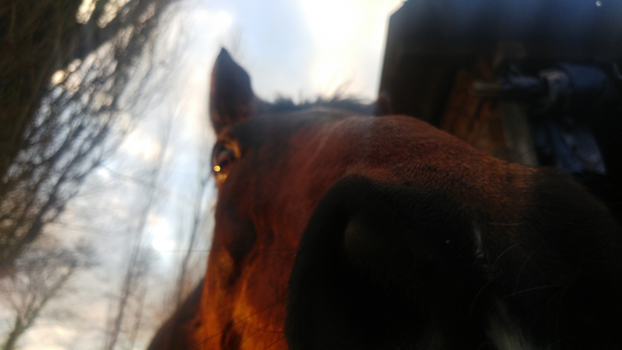 Donc ils sont dans un champ de boue, trop petit pour 2 à l'année, les clôtures toujours pas finies, du foin d'une qualité plus que douteuse, l'abri qui tient je sais pas comment, des chasseurs à gogo, mon van coincé en bas du terrain car trop trempé pour y aller avec la voiture et plein d'autres petits trucs. Et pour tout ça on m'avait promis qu'il n'y aurait pas de problème... Clairement N a perdu en confort, avant il n'avait quasiment pas de boue et c'était mieux pour son genou. Et V redevient sensible des pieds à force de rester dans la boue et de ne pas sortir sur le dur (météo et déplacements pro qui font que je stimule beaucoup moins ses pieds, je ne fais que parer et je sais bien que ça suffit pas).