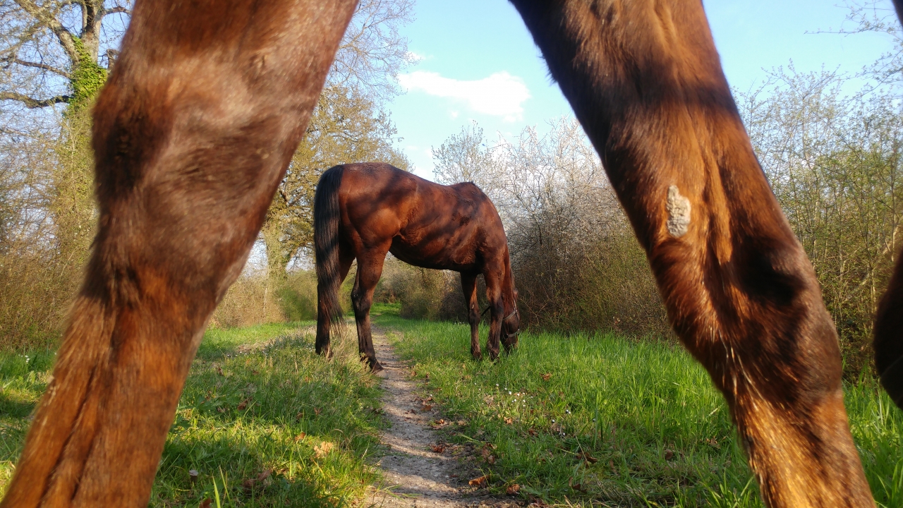 | Dire merci | Hier première "grosse" sortie depuis qu'on est ici. 1h15 environ, avec les 10 premières et 10 dernières minutes à pied. Beaucoup de pas mais j'ai quand même trouvé des chemins pour trotter et galoper. V était rincée.![]() |