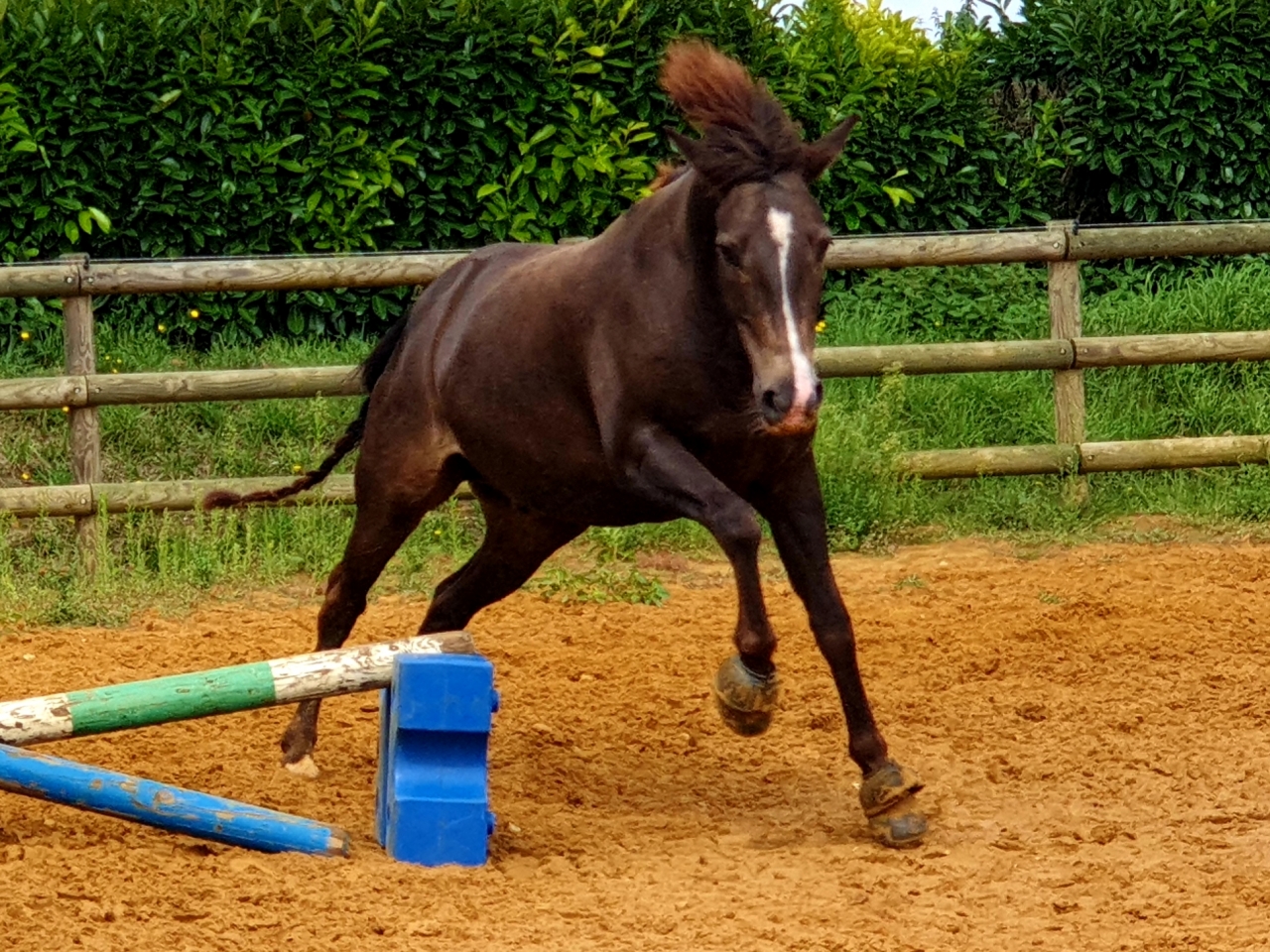 | Dire merci | J'ai enfin retrouver mon poney après 1 mois de vacances ( trop dure ma vie) Après un bon pansage je me suis dit que j'allais travailler un peu a pieds, tranquille pour une reprise. Sauf que le poney s'est mis tout seul en orbite et nous a montré toute sa gamme de coup de cul. Ma coloc était là elle a pu le filmer ![]() Voila donc les beaudelairies Lien Je crois qu'il est content de rependre le boulot |