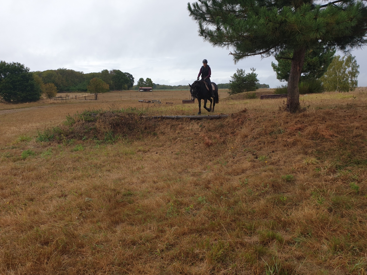 | Dire merci | Coucou ici ! Il s'est passé plein de choses depuis la dernière fois. Déjà j'ai repris le boulot du coup je peux plus du tout aller voir mon poney au même rythme qu'avant. Alors j'ai commencé à chercher quelqu'un pour le montet 2 fois par semaine en plus de ma coloc qui le monte aussi 2 fois et moi 1 fois du coup. J'ai répondu à des annonces et j'ai trouvé une candidate potentielle qui est donc venue l'essayer dimanche dernier. Beau est dans une phase top où il bosse vraiment bien et progresse beaucoup mais je ne sais pas ce qui lui ai passé par le neurone le jour de l'essai mais il a sévèrement éjectée la jeune fille, qui manque de bol s'est qquand même fait mal. Ça a été tellement violent qu'elle en a perdu sa boots.. ![]() Pas d'illusion à avoir, elle ne le prendra pas en DP. Du coup ma super coloc propose à son ancienne DP qui montait déjà Beau à l'occasion pour dépanner. Et voila l'équipe de Tata de Bobby est au complet ! Samedi j'ai fait un essai pour une nouvelle mono et je l'ai trouvé top. Mais du coup on est 3 à décider alors on se mettra d'accord quand l'ensemble des castings seront faits. Et enfin hier 1ère sur le cross ! On a eu beaucoup de chances, vu qu'il s'est mis a pleuvoir des seaux au moment où on s'est garés sur le parking du cross. En plus y'avait un.vent de dingue, toutes les conditions étaient réunies pour que mon poney soit zen et concentré . On se met direct à cheval, quitte a être mouillés autant ne pas perdre de temps. Je suis montée sur une cocotte minute qui aurait bouffé un vibromasseur. Mais il reste mignon. Il est surtout hyper curieux de tout ce qu'il y a autour. On détend autour des obstacles de cross histoire qu'il commence à voir ce qui l'attend. Ensuite on travaille autour du gué (à sec) pour faire des montées et des descentes. Et ensuite je le passe à ma copine, cavalière de complet, pour qu'elle l'amène sereinement sur ses premiers obstacles fixes. Il a été parfait. Il a un peu hésité sur certains profils mais au 2ème coup il a tout sauté. Ils ont même pû enchainer une dizaine d'obstacles (vidéo à suivre) Bref super fière de lui et la prochaine fois c'est moi dessus pour sauter. ![]() Là c'est avec moi a la détente avec mon gilet trop grand qui a flingué ma selle ![]() Puis avec ma pote, d'abord une barre classique ![]() Contre bas La suite arrive |