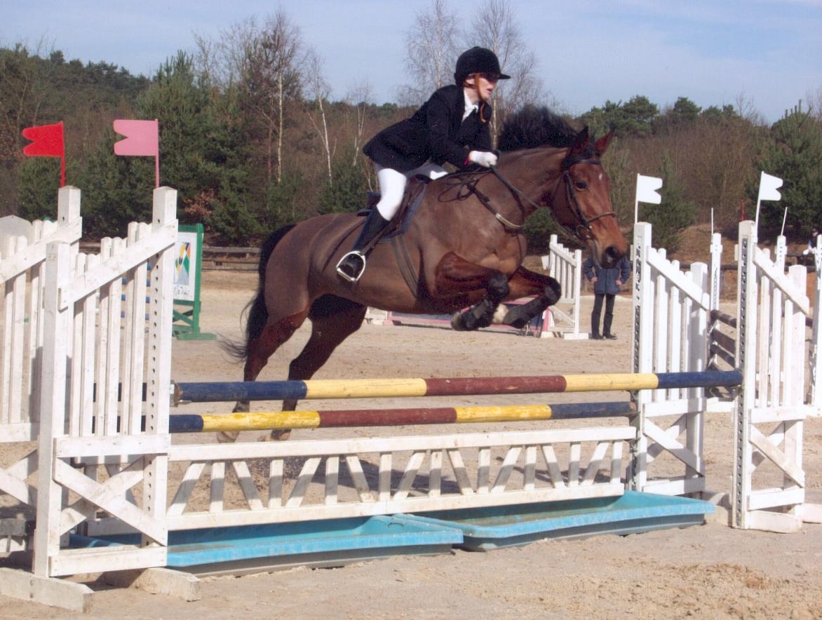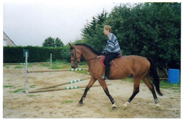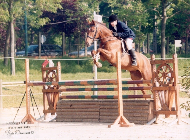 | Dire merci | L'hiver 2000 , Graziella passe sous ma selle comme jument de CSO . PapaAssi continuant de monter Uscita. Tout l'hiver , nous avons participé à des entrainements pour vieux cons (vétérans ) et c'était super sympa .Un groupe de coach / gérant d'etablissement equestre avaient mis en place ces concours d'entrainement , et apres les épreuves on se retouvaient tous pour diner avec remise des prix à table. Le concept de leur concours , est que tout le monde faisait le meme parcours , mais que la hauteur des barres etaient différentes suivant la catégorie ou tu t'inscrivais. En gros , je partais sur l'épreuve à 90 cm avec Graziella , alors que PapaAssi partait sur celle d'1,10m avec Uscita. Mais nous avions reconnaissance commune et c'était vraiment sympa d'avoir la mere et la fille dans le van. Moi et Grazi : ![]() |