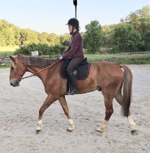 | Dire merci | vecchio merci de tes encouragements ! Mais il faudra mille heures environ pour avoir à nouveau une position « naturelle »... Après tout est lié : changer de poste-> s’installer définitivement-> reprendre sereinement à un rythme régulier... Pour l’instant tout est chaotique ! Mais le fait que j’ai commencé enfant à monter a peut-être contribué au fait que j’ai rapidement repris mes marques . Il faut juste que je gagne en souplesse pour monter (bon j’ai un escabeau dans la carrière mais là c’est plus pour le dos du cheval que pour moi-même...). Une selle un peu plus contraignante (aussi confortable, celle-là j’ai l’impression que mon popotin. décolle sans arrêt) pourrait par ailleurs m’aider aussi. Et le fait que je n’ai pas beaucoup de photos ne me laisse pas trop le choix d’avoir posté celles-ci comme par hasard celles où je suis en train de parler ... Spoiler