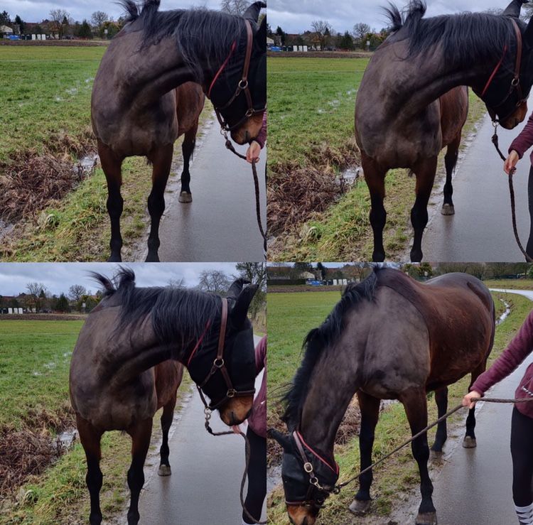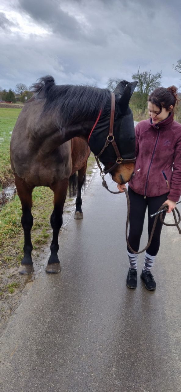 | Dire merci | Je remonte tardivement ce post ! Déjà merci pour les vœux en retard quixote et k.zel . Début janvier mon père a dû aller aux urgences pour son cœur et pendant une semaine j’étais tellement stressée après ça que je ne suis pas allée sur le net... Parallèlement le cheval a été arrêté deux fois pour crise d’arthrose. Pas joyeux tout ça. Donc les semaines où c’était moyen, le cheval était marche au pas. Inutile de dire qu’au bout de 3-4 jours le cheval devenait chaud en main, hyper excité, trottinant sur place. Tu parles pour du repos . Il est sous traitement . J’ai eu quelques cours bien entendu, quand il n’était pas raide (on a fait mollo, par exemple beaucoup de pas . Le prof est venu aussi juste pour une demi-heure aussi, on a travaillé exclusivement au pas. Il a refusé que je le paye Mais on cherchait à le bosser dans le bon sens, à me donner les bons outils. Et mine de rien ça a fait du bien au cheval!Ce week-end, après avoir eu un état grippal qui m’a cloué au lit (cetait pas la grippe cependant), je suis allée marcher le cheval entre 2 villages (le week-end la cantonale devient exclusivement piétonne). Mon copain est venu pour une fois (il était pas content au début, bon moi non plus j’étais pas hyper motivée : vent, pluie... mais ça a fait du bien à tout le monde au final). De marcher sur du dur je pense que ça n’a pas fait de mal au cheval non plus. Là plus de raideur, il va être remonté progressivement... Donc pour une fois que j’ai mon copain avec, je m’imaginais que j’aurais des photos. Je l’ai vu sortir son portable, alors toute contente je tape la pose et j’attends en souriant. Voilà le résultat : ![]() Ah super quoi! Il s’est défendu en disant : « aaah mais je voulais faire des photos sympas du cheval ». Hey merci 😅 Bon, je râle trop, j’en ai une avec (la fois où je ne regarde pas). Et je vais faire un montage vidéo, avec trois séances (2 catastrophiques ) où j’ai monté . C’est dans lordi ! |