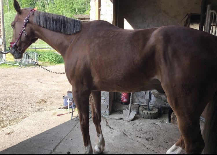 | Dire merci | 5km/h c’est la moyenne 16 c’était le max et je dirais maximum 2mn. J’te dis j’ai peur d’abimer les chevaux Mais après ce galop il se tenait tout seul, prenait le mors malgré les rênes longues...c’était plus le même cheval par rapport au début cauchemardesque ! Pas actuellement pour la photo , je regarderai ça toute à l’heure car du tel je dois faire une copie d’écran (photos trop lourdes) + télécharger, mais pas de souci ! C’est une photo prise à l’attache le premier jour , donc pas parfaite (pas « au carré ») . Apparemment une potentielle autre DP devrait l’essayer la semaine prochaine. Ça ferait 4-5jours de monte par semaine dont 2 cours avec le prof (donc le moins d’erreurs possibles....quand je travaille seule je fais plus ou moins du copié-collé ).La selle... alors j’ai dû prendre la mienne. J’ai demandé l’avis au prof et selon lui elle lui va, mais lui serre un peu au niveau du garrot. C’est là qu’il m’a conseillé la Wintec Pro (je pensais prendre l’arcade rouge...sur celles interchangeables) ou Isabell... Mais acheter une selle pour un cheval que je monte en CDD...bon... je veux bien faire un effort, c’est juste que le jour où je changerai, elle ne sera pas adaptée au prochain cheval... Sinon je monte à cru je me rappelle certains cours de trot enlevé à cru (toujours avec mon vieux prof ! ).Après je ne suis pas ostéopathe...je ne sais pas si cest son dos... Spoiler
