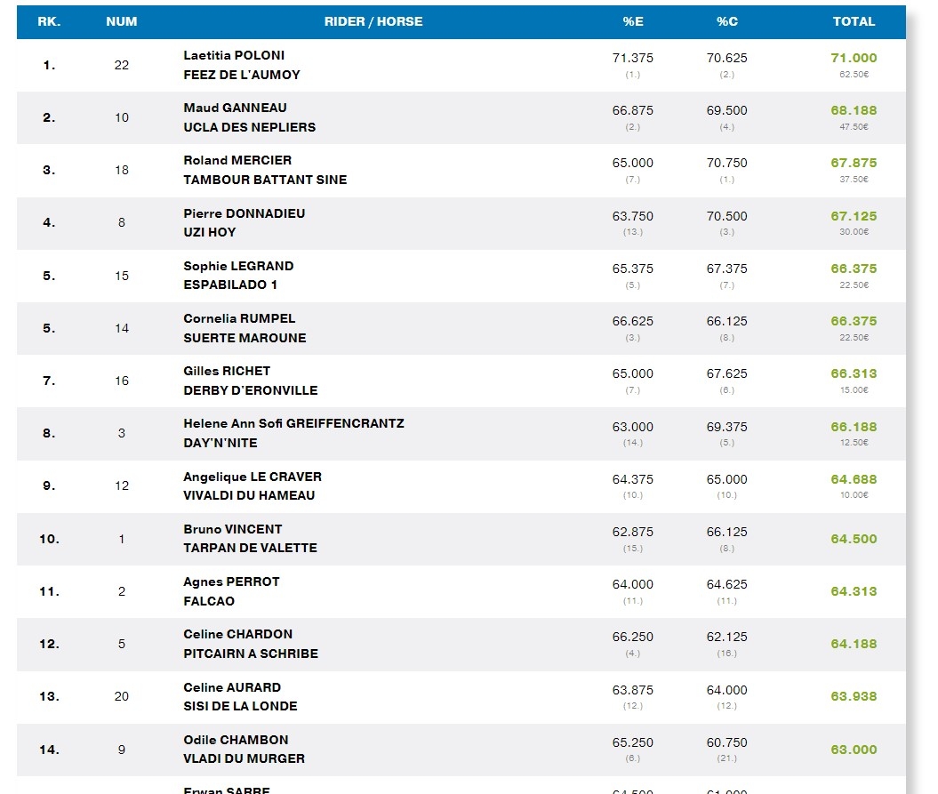 | Dire merci | Je ne sais pas si tu as remarqué mais il y a quasi plus de gains sur les épreuves préparatoires et les préliminaires sur les petits niveaux …j’ai posé la question à des organisateurs, réponse : ça coute de plus en plus cher d organiser des concours (il faut rémunérer les juges maintenant normal après tout) du coup pour pas trop augmenter le prix des engagements il faut baisser les dotations … |