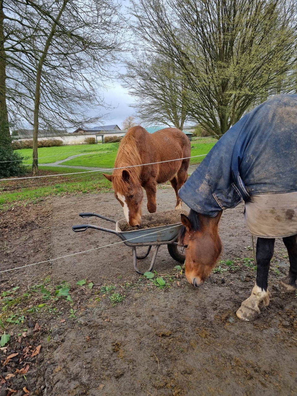 | Dire merci | On se demande toujours ce qu'on aurait pu faire de plus, si on était arrivé plus tôt, si on avait fait tel traitement, telle nourriture, tel environnement et j'en passe. Le truc c'est qu'à partir du moment où tu prends soin de ton cheval, comme c'était bien le cas ici, tu n'aurais rien pu faire de plus. Je confirme, le rond tassé, c'est quand ils essaient de se lever mais que ça n'est plus possible. Je pense que c'est pour ça qu'on a de tous petits shet qui vivent bien vieux : parce que leur petit poids les aide grandement à se relever. tous les jours, j'ai Chicco coucher dans un rond comme ça, il arrive à se relever, mais il fait moins de 200kg. Dès que c'est un peu plus, ça devient franchement compliqué. Si on en vient à lever avec des sangles, à bourrer de divers médocs pour faire turbiner la machine pour que le cheval se lève, c'est pour moi de l'acharnement et c'est bien mieux de les voir partir comme Graziella, même si c'est soudain et qu'il faut l'encaisser, plutôt que de les voir se sentir partir, de voir leur capacité de fuite réduite à néant alors que c'est un instinct primordial chez eux, et se sentir coincé, c'est une source d'angoisse. Ici, la jument était suivie avec soin, tu n'as vraiment rien à te reprocher |