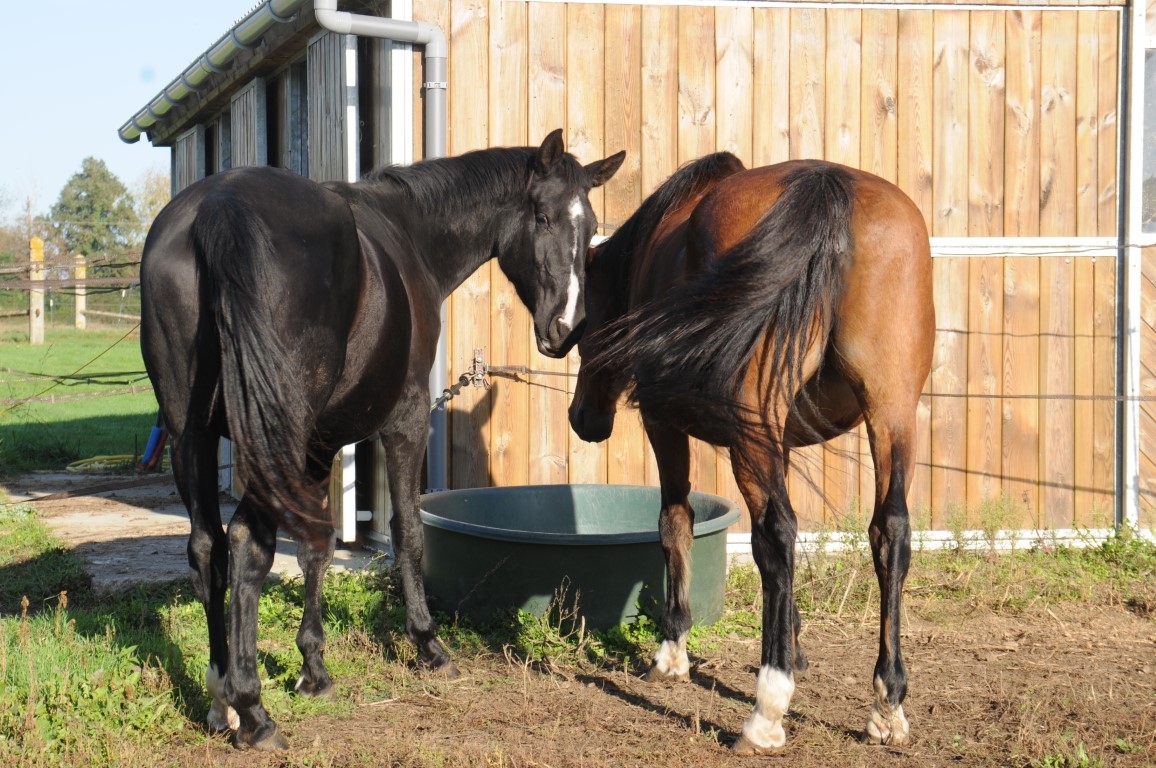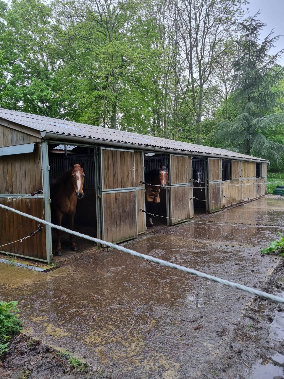 | Dire merci | Journée non stop sous la pluie , ils annoncent 2 cm de flotte. Et les chochottes à l'abri ![]() Gold ![]() Et autrement , super nouvelle. Une jeune femme va nous rejoindre avec ses deux chevaux (hongres espagnols) . Elle habite à 500m de chez nous et ses chevaux etaient en pension , loin. Le deal , nous lui laissons deux boxes et un 1,8 hectares , elle est chez elle , elle entretient ses chevaux , et on s'entraide mutuellement. Je vais pouvoir partir en vacances !!!!!! Elle arrive debut juin. Il y aura à nouveau 5 chevaux à la maison mais la charge va etre partagée et en plus , elle est super sympa. Tellement ravie de pouvoir partager notre passion avec quelqu'un. |