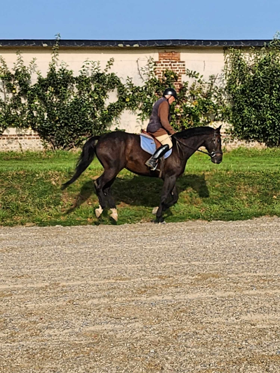 | Dire merci | 1ere fois monté ![]() Il nous a un peu embété dans la salle de soin , on ne voit pas les autres chevaux et cela ne lui plaisait pas du tout. Mais il va s'habituer. Dans la carriere (dans laquelle il n'etait jamais entré) il a été royal , il ne regarde rien. ![]() ![]() Il a des allures extra, il se méjuge de 40 cm au pas (si ce n'est plus ) et couvre un terrain de dingue au trot et au galop , et tout ça en métronome ![]() Je pense que pour faire du hunter c'est le cheval parfait Bon , apres , il faut que chacun prenne ses marques , mon mari avait un peu de mal au trot tellement le cheval le sortait de la selle |