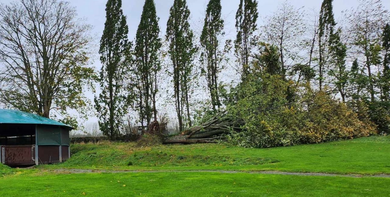 | Dire merci | La tempête est passée , cela a mugit pendant quasi 24h , c'etait impressionnant. Plusieurs arbres de tombés , dont quelques uns sur la route. Mais quand meme , du bol , le manège a été épargné ![]() Sur la photo , cela ne se voit pas mais le premier arbre en a entrainé deux autres dans sa chute. le combo pluies depuis 15jours + arbres encore plein de feuilles + vents depassant les 100 km/h , ça ne pardonne pas |
