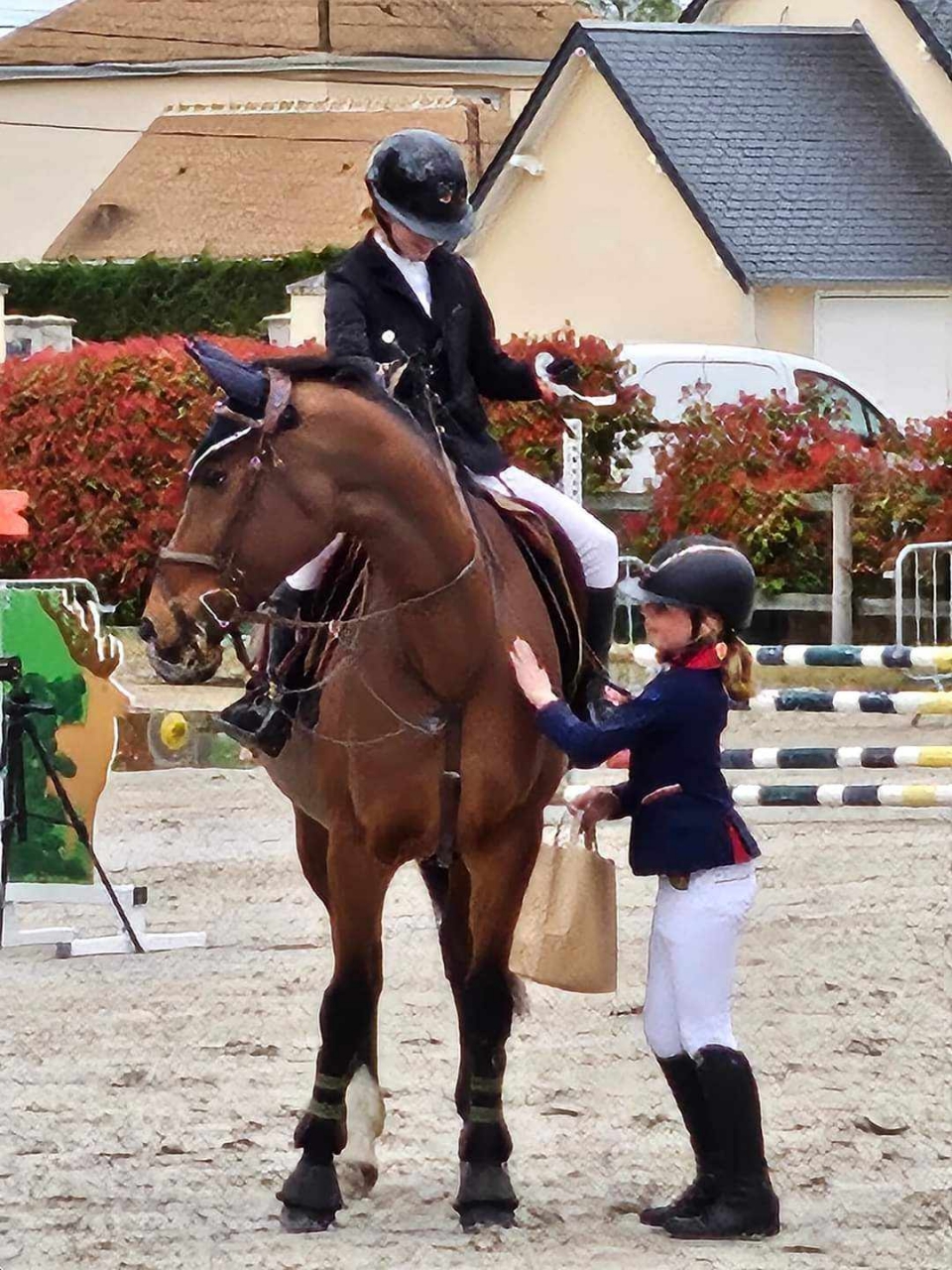 | Dire merci | Oui , pour l'instant tout est redevenu completement normal. Mais c'est vrai qu'iness est une stressée de dingue , donc... Autrement , on a une nouvelle cavalière sur la carrière. ![]() Une jeune voisine , nous a demandé si elle pouvait nous louer la carrière une fois par semaine , je lui ai répondu que c'etait gratuit mais que je voulais qu'on fixe une demi-journée et que si elle veut venir un autre jour elle me prévienne. Son cheval est un bon selle francais par Apache d'adriers et il s'appelle Cheyenne Elle vient chez nous directement à cheval en passant par la plaine. |