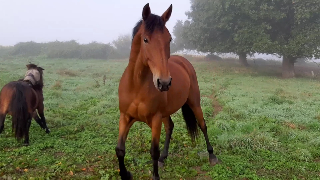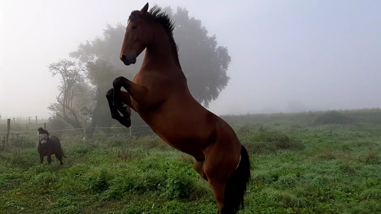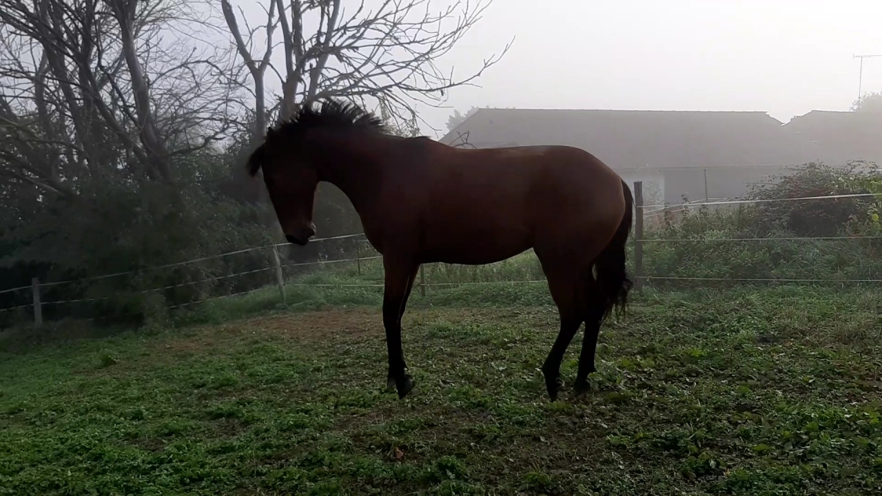 | Dire merci1 | Il a la pêche Pour les vidéos au boulot, je n’arrive pas à voir si ce sont des rênes allemandes ou une martingale, mais moi je lui lâcherai la grappe devant. Il faut qu’il mette du poids derrière, et pour ça, ça sera bien plus simple de l’avoir plus ouvert Au départ c’est bien trop compliqué de l’avoir sur la main avec le poids derrière. La pour moi, il court beaucoup trop, il ne pousse pas franchement derrière, et va trop vite devant On relève la nuque de 10cm, on s’en fout qu’il ait le nez au vent, on va doucement, mais les jarrets en dessous Ça va ressembler à rien au départ, mais c’est obligatoire pour avancer dans le travail. |