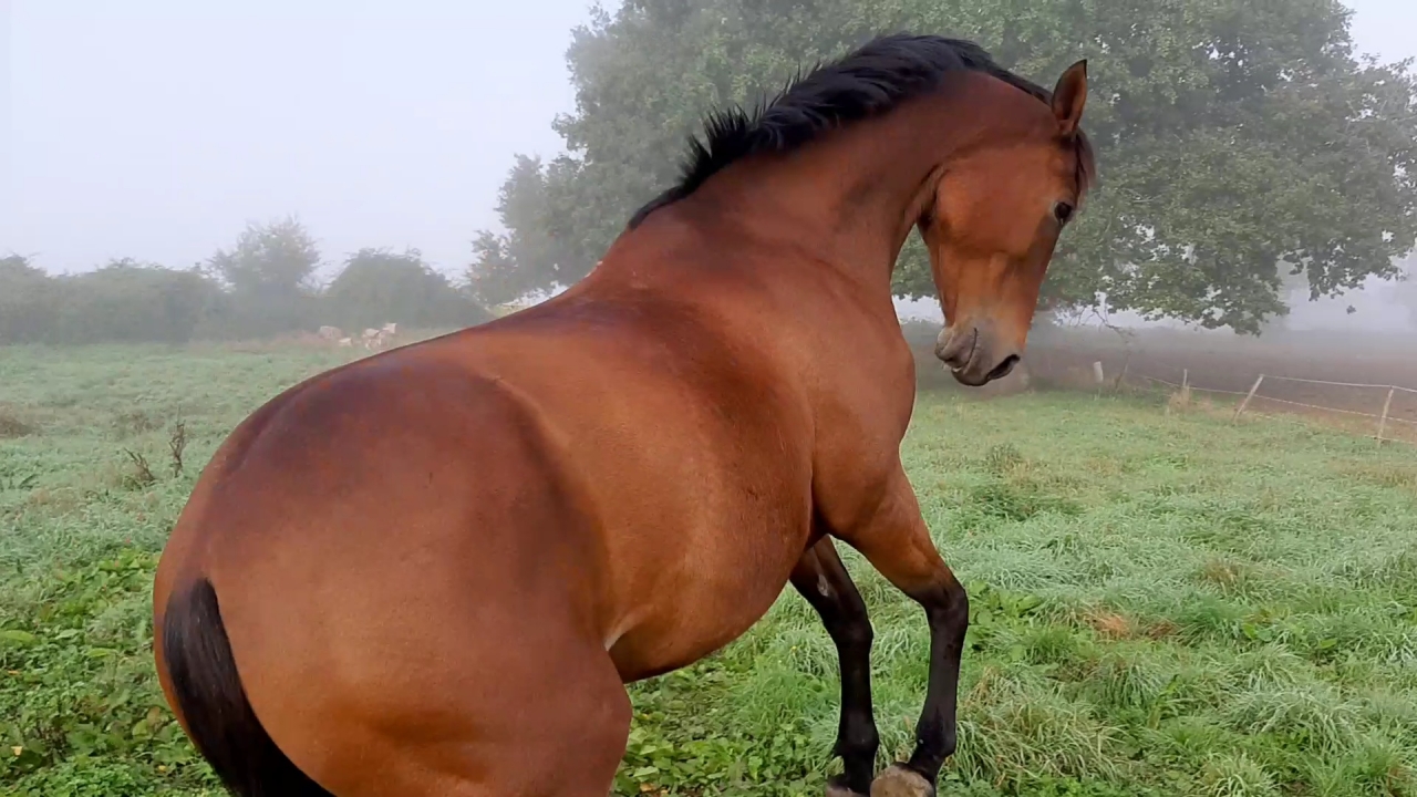 | Dire merci | oui j'ai vraiment du mal à le mettre sur les hanches sur le plat. mais déjà il ne s'appuie plus donc ce côté là c'est déjà bien. oui je dois accepter qu'il s'ouvre plus pour le moment, il fonctionnera mieux, je l'avais déja remarqué à l'obstacle : : le laisser tranquille devant, le monter plus naturellement. mais c'est une façon de faire qui m'est étrangere , j'ai toujours monté des chevaux maitres d'ecole super bien dressés à l'obstacle, toujours tres ronds... je vais rebosser la meme chose lundi matin sur un cercle et si j'ai pas trop mal au dos ca devrait etre mieux. sinon entre temps on entretient la bestiole en longe car j'ai pas eu le temps de remonter dessus et puis sinon ben monsieur s'eclate bien le matin à la fraiche hors sol ![]() sheytana il fait concurrence à Apo ![]() ![]() cheval de cirque ![]() |
