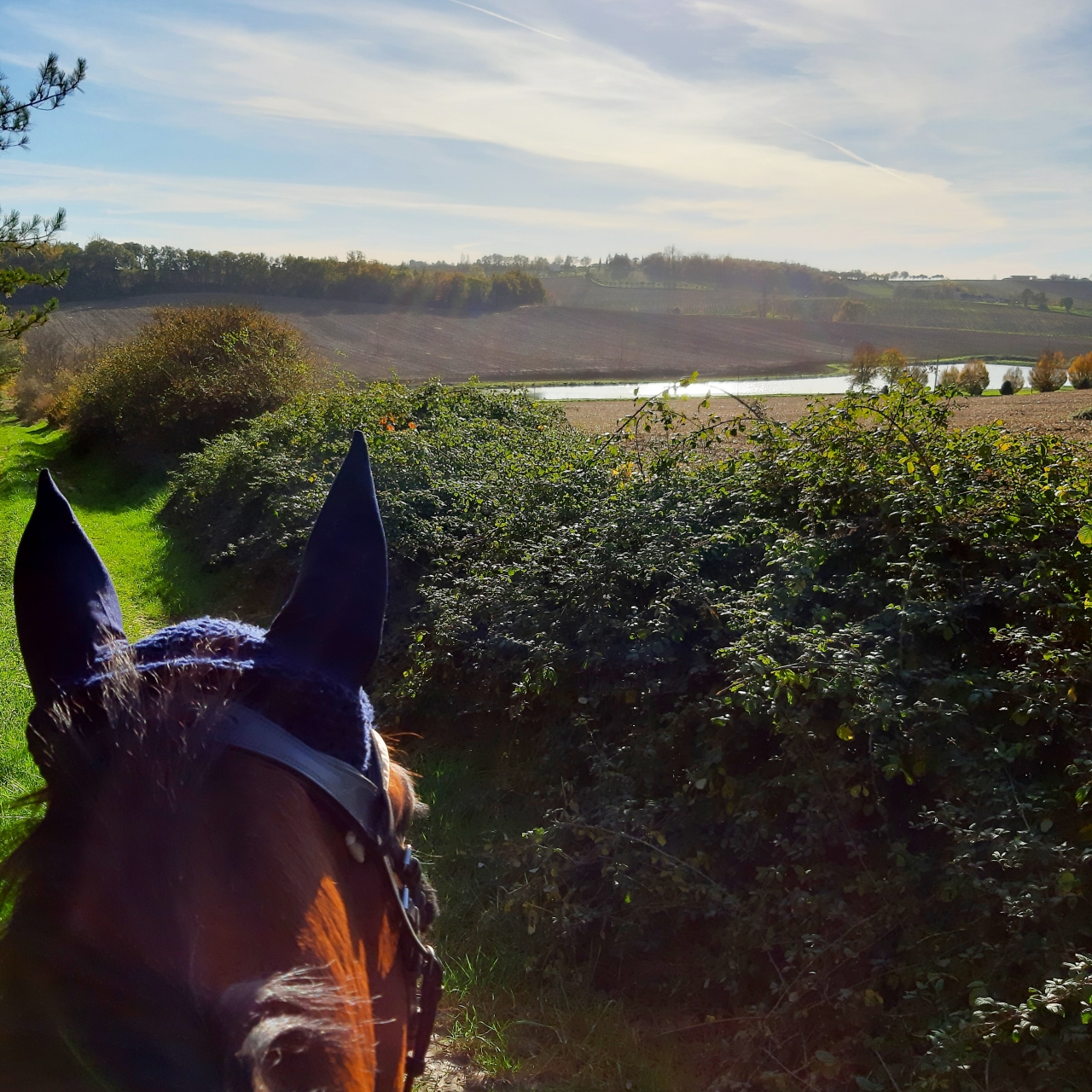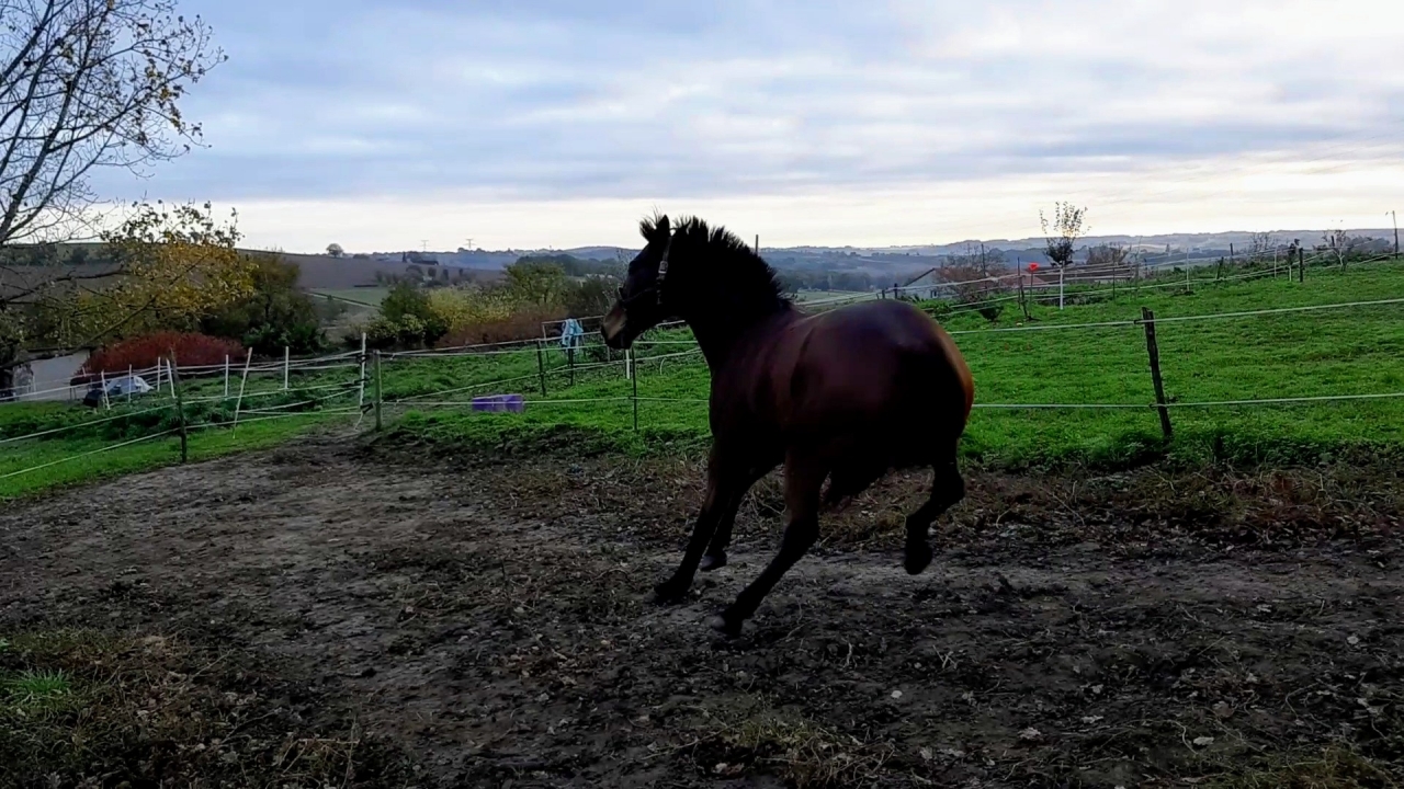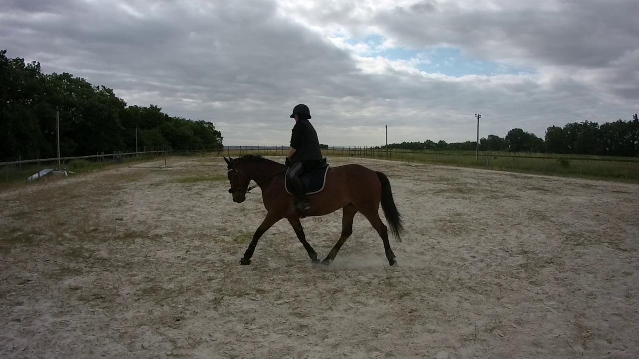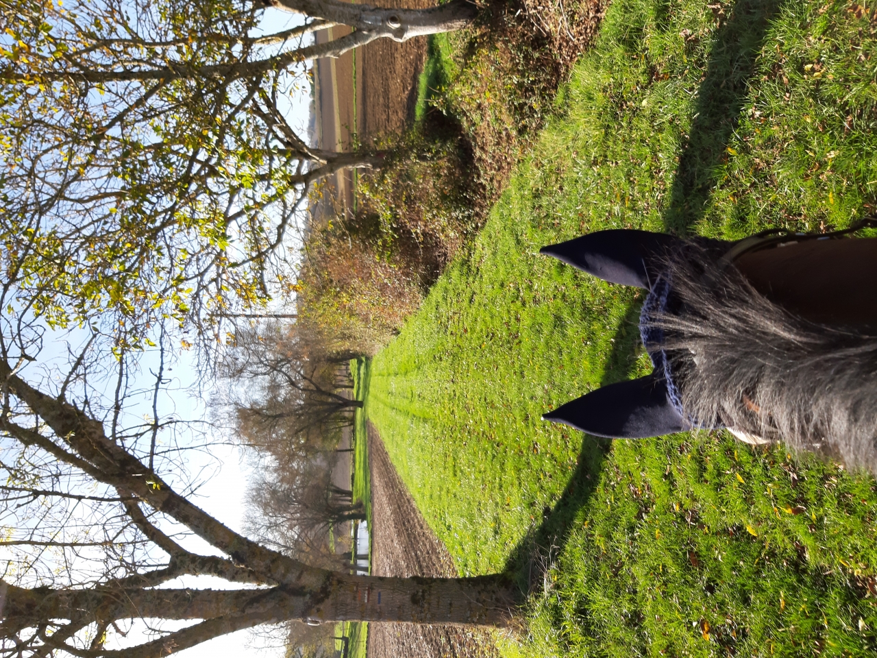 | Dire merci | bon sinon hier seance en extérieur dans un périmètre de 1km autour de la maison 1h maxi j'ai réussi à faire 5 km sur des chemins où j'ai principalement bosser le galop, faire 10 foulées rassemblées 10 foulées allongés, mais aussi bosser le trot dans le meme objectif : trot de travail puis tout petit trot rassemblé (ce qui est tres difficile pour calin mais le fait d'etre en extérieur et pouvoir bénéficier du mouvement en avant naturel en extérieur permet de mieux tenir ce petit trot sans tomber dans le pas ![]() c'etait assez bien mais je l'ai senti frustré de ne pas pouvoir galoper à fond de balle, du coup apres pour finir j'ai tout lacher |