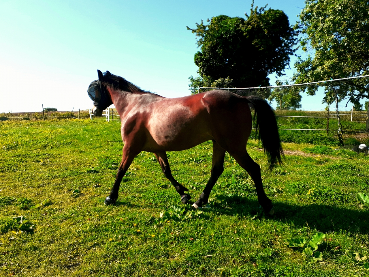 | Dire merci | fini le confinement au box pour calin, il retrouve sa liberté au pré et il est content ![]() sur 3 pattes tant qu'à faire ![]() ![]() et sans les pieds, poney volant ![]() ![]() ![]() |