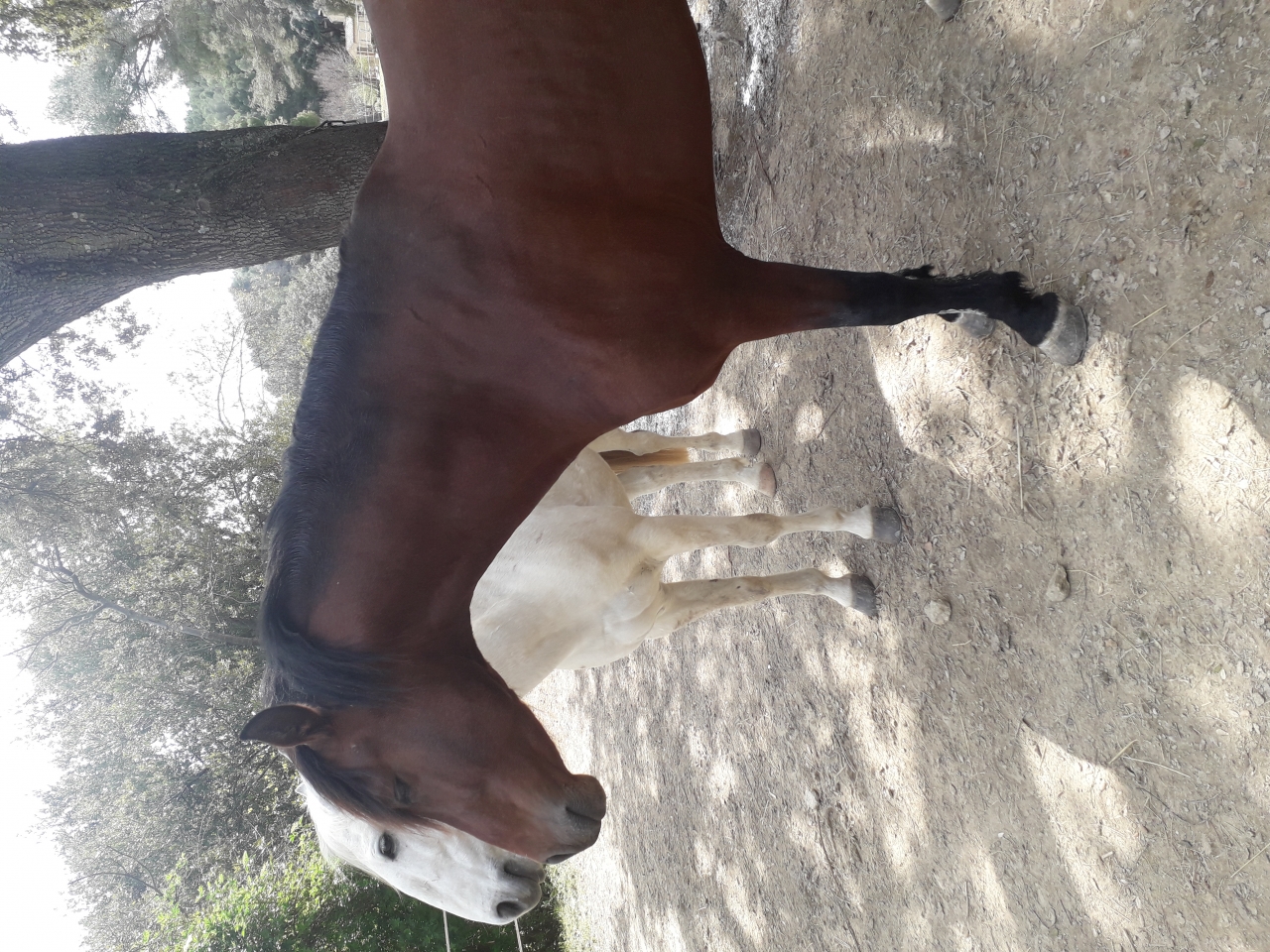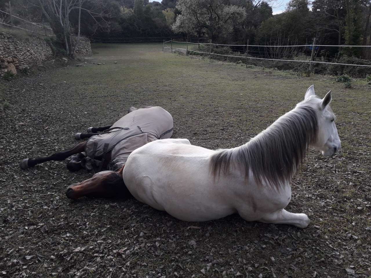 | Dire merci | mais a mon avis vu comme c'est parti ça m'étonnerai que les concours du mois d'avril soient maintenus aussi. En tout cas nous hier on est partis voter a cheval c'était marrant, je vous mettrai des photos quand j'arriverai a les basculer sur mon post. Sinon balade pour mon gros V ce samedi, toujours un ange égal a lui meme. Du coup on a galopé en ligne droite dehors pour varier un peu le "travail" au galop et lacher la soupape aussi ça fait du bien. Avec le confinement a la maison ce qui est cool c'est que je vais pouvoir monter tous les jours au soleil de 13h vive les chevaux a la maison ![]() |