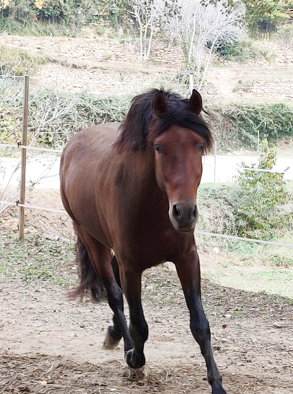 | Dire merci | Pour l’activité, j’ai le même à la maison, en version lusi. Il se met dans son allure de confort où il ne s’emploie pas. A voir, ça parait bien, comme il est souple, s’engage mais en vrai, il ne se sert pas de son dos. Ça aussi c’est un point à faire gaffe, comme ils sont courts, on a l’impression que le dos passe toujours, alors que non. Même si c’est dur pour moi, je le force maintenant à toujours être actif. Même au pas rênes longues, même dehors. |