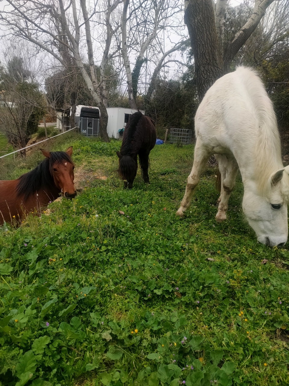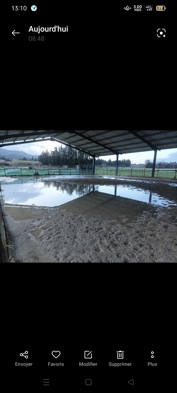| Dire merci | Tu dis ça par rapport aux restanques ? Normalement j'ai pas d'accident bien que boti a 2 ans s'est laissée glisser exactement là où elle mange sur la photo ![]() Les deux postérieurs allongés derrière j'avais eu la peur de ma vie Mais bon en 10 ans c'est "tout". C'est pour ça que je veux pas de vieux en pension vu les accès (je ferai une photo de la pente d'accès c'est raide raide ). Ces 3 là s'entendent plutôt bien. Hier il y a eu l'épisode méditerranéen annoncé le poney était sous la flotte et les deux autres dans l'abris heureusement 30 minutes après ils étaient tous les 3 dedans. Boléro n'est pas toujours très sympa mais ça va il s'est détendu avec boti et ne cherche plus à chasser le poney coûte que coûte. D'ailleurs sa propriétaire est passée hier elle devrait partir vers avril/mai. Sinon l'organisation du stage a envoyé une photo du manège inondé a 50% c'était prévisible .... Le van est attelé on fera avec ![]() |