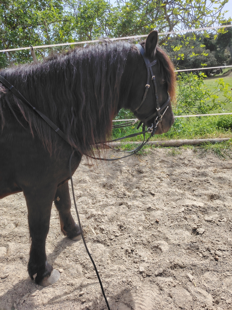 un peu dn mal a se remettre dans les aides, tendance a charger un peu devant et manque de souplesse général.