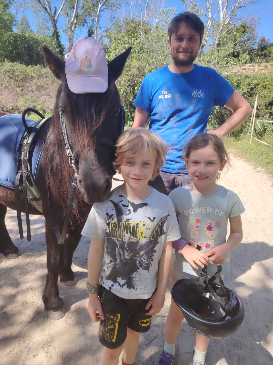 | Dire merci | C'est l'histoire de : Vandalo : PRE, 8 ans, entier ![]() Takhan : PSL, 16 ans, hongre ![]() ![]() Botija : le bébé, PRE, jument, 4 ans en mai ![]() ![]() et Popo alias Poney, alias Batman Edit , un énième changement de titre 🤣 Message édité le 25/07/25 à 10:51 |