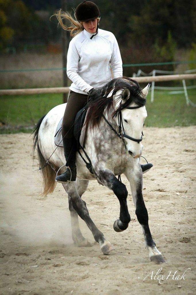 | Dire merci | exact nelimihabis c'est exactement ça. P.B je l'ai beaucoup lu après pour vandalo je préfère le mettre droit épaule devant les hanches et "attendre". Il vrille la tête quand il fatigue aussi, c'est un jeune encore, je combine donc la demande de correction rectitude avec parfois des pauses car il est juste fatigué ou plus disposé. On se pose 2 minutes et on reprend droit. Je filmerai a midi. |