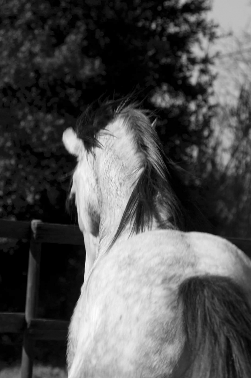 | Dire merci | dilou je l'ai fais castrer a 5 ans. A l'époque il était seul en paddock avec juste des contacts visuels. Absolument pas chaud mais il intériorisait tout et se mordait les flancs. Il faisait la toupie c'était horrible de le voir faire ça. Du coup je l'ai castré pour ça. maratre oui il a très rapidement eu la tête toute blanche, il était trop beau a 2 ans il avait la croupe dorée (sa mère est isabelle). |