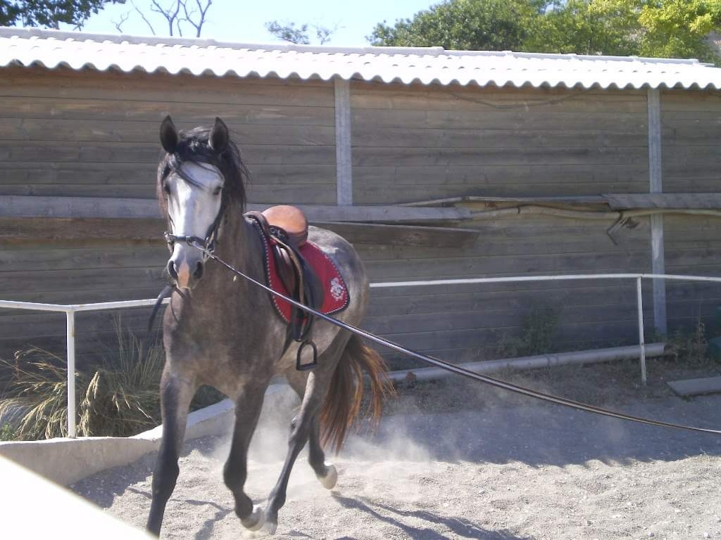 | Dire merci | sheytana comme en selle, repartir/revenir sur l'allure jusqu’à atteindre le rythme propice et là je m'aide à la voix (il a une sainte horreur du stick monsieur). La longe reste floche, je lui demande de descendre si je vois qu'il se quille un peu trop la tête en l'air. La chambrière vers la sangle qui monte et descend comme un chef d'orchestre et ensuite que la voix. Dès que je vois que ça va se dégrader ou que je perds le dos je remets devant. Là sur la vidéo c'est cracra avec le téléphone je bouge pas pareil et je peux moins doser sur la longe car j'ai le téléphone dans ma main donc il se met au mini syndical mais si tu veux je me ferai filmer comme ça tu verras ma gestuelle et comment je m'y prends. Ce qui est important c'est de bien repartir trot de travail derrière ou au pas. Sur la vidéo c'est plus un simulacre de passage, pour le piaffé parfois pour un peu plus le mettre dessous derrière : je marche au pas, je raccourcis l'allure et je demande "allez takhan et déclenchement à la voix", si j'ai pas le dos en place, je m'arrête, 3 pas de reculé (d'où l'importance d'un cheval dont on contrôle chacun de ses pieds) de façon a pouvoir l'arréter au bon moment et je demande depuis l'arrêt. Ça marche bien. Chez lui. C'est du bricolage. Mais on s'amuse. |