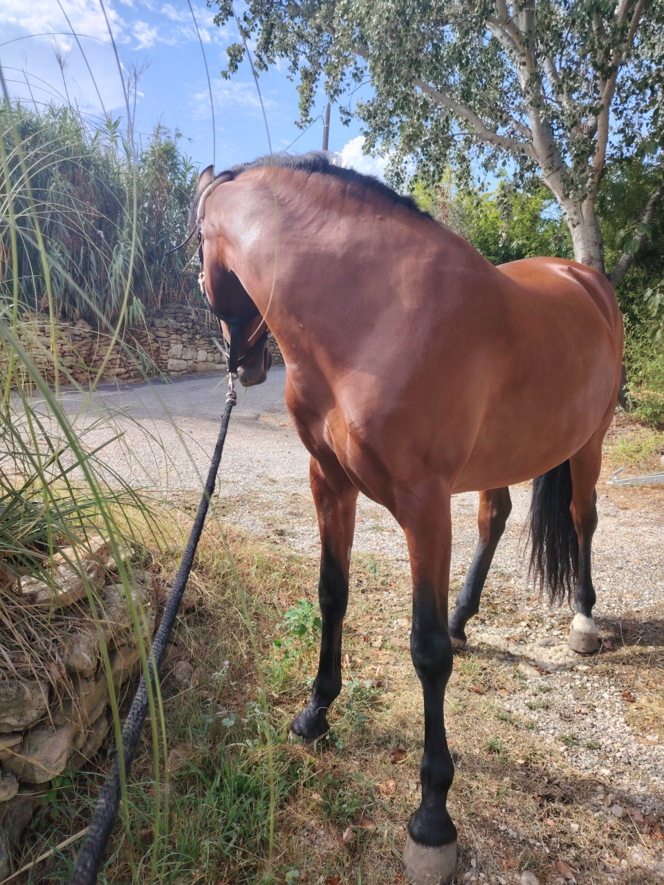 | Dire merci | Balade en baskets très mauvaise idée ![]() Avec les mono branches ça piiiiiince le mollet ![]() J'ai du écourté entre ça et vandalo qui a mal dormi à cause de l'orage et qui se traînait les fesses, 30 minutes et pi voilà. Sinon suis dépitée la couverture en 155 est trop petite mais vraiment il est boudiné. Il la garde ajh tant pis avec tout ce qu'il a plu c'est la foire aux taons... Si je veux éviter de le retrouver en sang... |