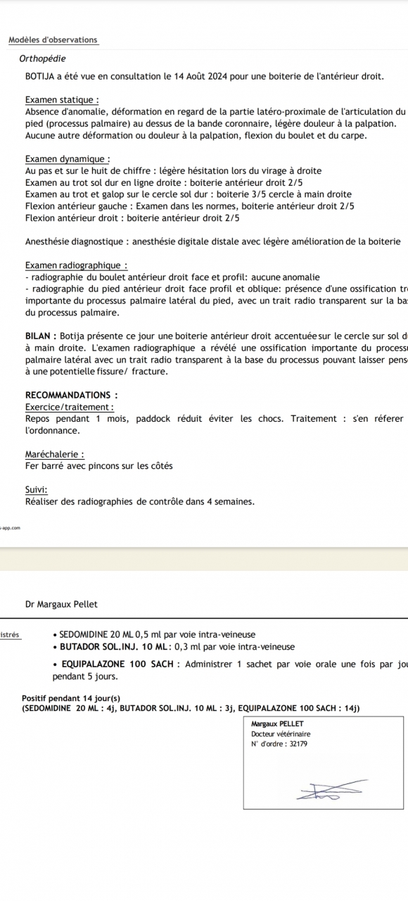 | Dire merci | Le fer barré c'est pour soulager l'appui. M'en demande pas plus je saurais pas t'expliquer. ![]() Le deuxième pied idem sans fracture quoi qu'un peu moins ossifie (la genre de corne) |