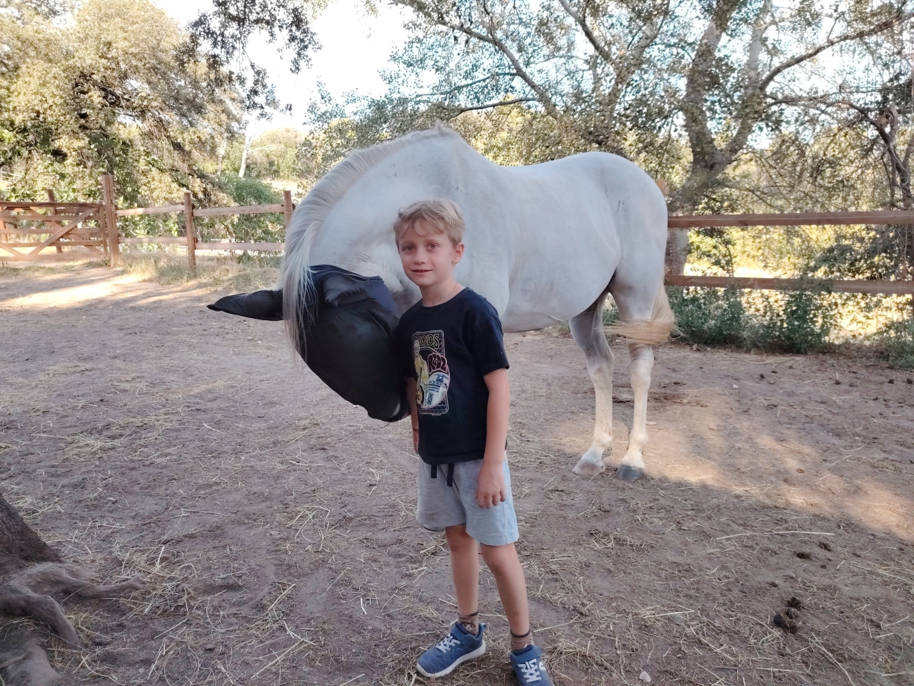 | Dire merci | Cette vidéo est archi trop mignonne. J’aime bien la tête du poney qui voit bien qu’il y a un problème avec ses rênes 😅 Quant à ton fils je reconnais bien le côté garçon qui gigote à côté ! |