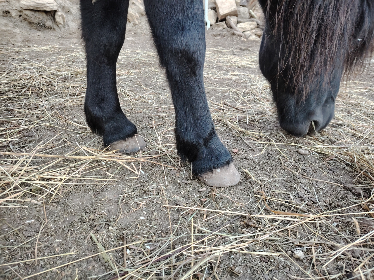 | Dire merci | Merci Après ça fait une semaine que je l'ai pas vu en position report de poids vers l'arrière il la fait quand c'était tout frais là il se tient normalement "juste" il a sa jambe de bois quoi. Bref je leur ai copeauté l'abris jusqu'au genou au moins c'est mou et il a moins mal... Mon pauvre poney. On a déferré pépette qui fait peur a voir quand elle marche mais pour le coup sur les cailloux. Bref on est pas sorti du guet mais au moins si le poney c'est confirmé que c'est une bleime ça me soulage. Allez j'attends la véto. |