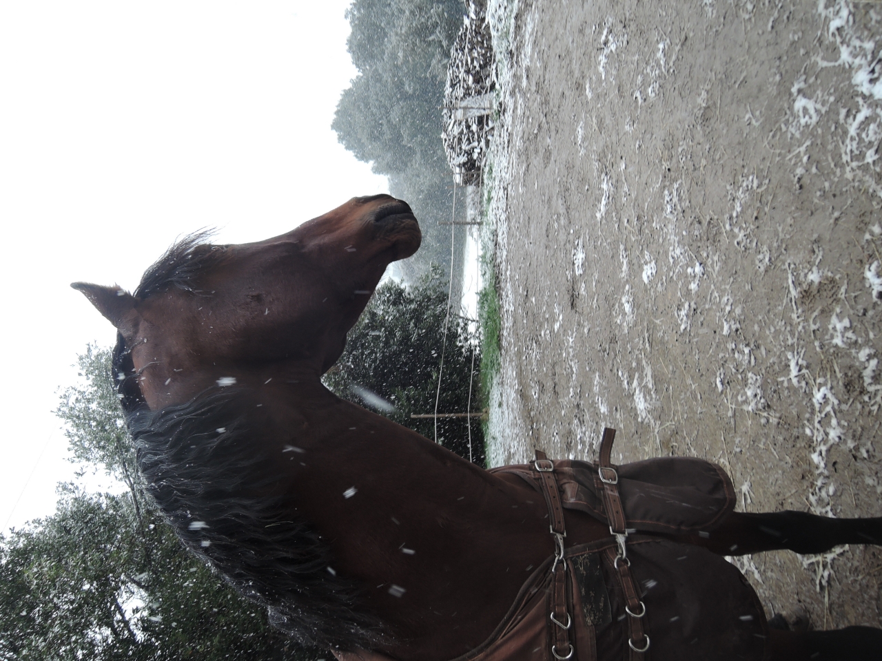 | Dire merci | @oumicalin, j'ai commencé hier mon challenge gainage... rdv dans 2 mois ![]() Donc ce week end hiiiihaaaaa il a neigééééééé au départ ma coach devait venir dimanche matin, j'ouvre un oeil a 7h30, je regarde mon portable, ma pote qui habite a coté m'envoie un message "on selle, il neige". Heuuuuuuuu... et là ouiiiiiii petite couche fine mais pour ici c'est déjà trop trop bien les photos c'était en début d'épisode, on a fini a 2 cm partout. Pas énorme mais déjà sympa pour nous ![]() les chevaux sont allumés complet ![]() ![]() ![]() Bon tout le monde est resté aux paddocks mais clairement Vandalo est très contrarié; ce matin il est parti comme une fleche queue sur le dos sans meme prendre le temps de manger ça va être sympa a midi a cheval et mes obligations familiales feront que j'ai pas sellé le matin mais j'ai fait des boules de neige. Bon c'est sympa aussi ![]() Cela dit ma coach est pas venue depuis le 5 décembre, je fais des économies mais alors ça commence a manquer... ![]() |