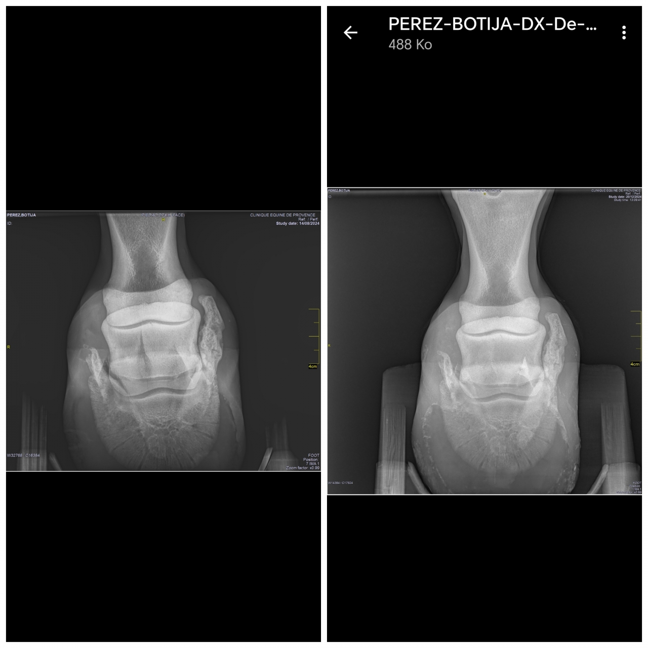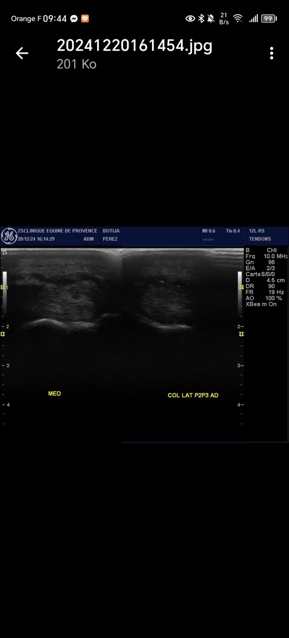 | Dire merci | Pour ceux que ça intéresse un petit avant après. 10 septembre/20decembre ![]() Et les deux sesamoides avec un avec des fibres moins nettes. ![]() |