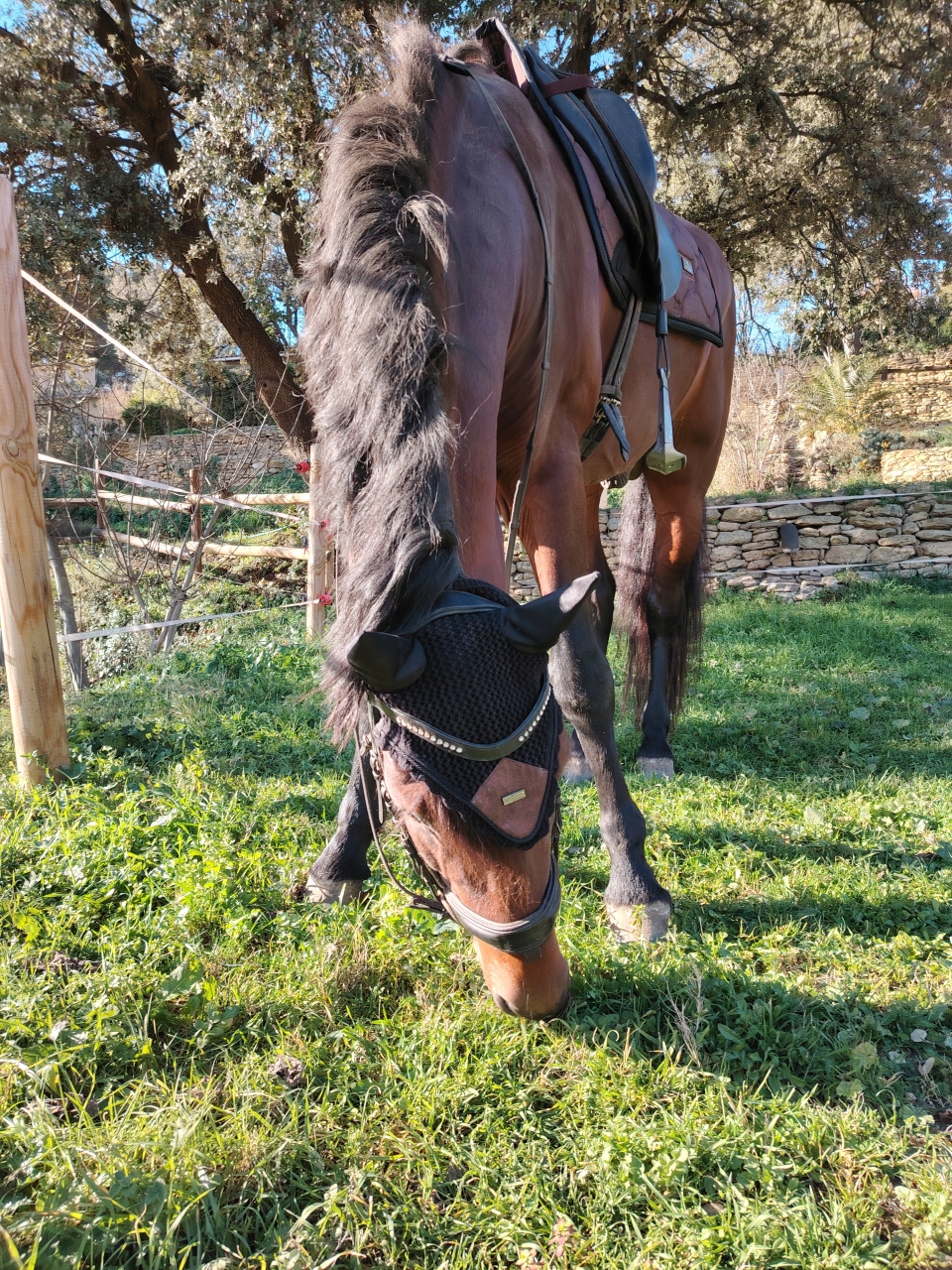 | Dire merci | J'ai eu des scrupules aujourd'hui...![]() Donc j'ai sagement fait les paddocks en attendant que Mosieur se réveille de sa sieste j'avais l'impression de faire pire qu'avec mes gosses... Genre quand tu veux qu'ils se réveillent mais pas de mauvaise humeur, du coup tu fais du bruit dans la maison mais sans avoir l'air de faire exprès Donc bon 30 minutes après il a fini par se mettre en vache et lever son auguste popotin ![]() Donc reprise après 2 jours off. Un peu toujours le même fond de programme histoire de répéter, confirmer et corriger. J'ai remis au programme le fait de s'étendre au galop nez loin devant et remonter en main sans changer la cadence toujours dans l'idée de le rendre encore plus attentif a mon dos a moi vu que Mosieur est délicat de la bouche Spoiler