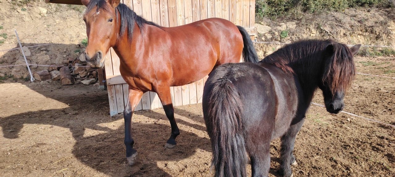 | Dire merci | C'est l'histoire de : Vandalo : PRE, 8 ans, entier ![]() Takhan : PSL, 16 ans, hongre ![]() ![]() Botija : le bébé, PRE, jument, 4 ans en mai ![]() ![]() et Popo alias Poney, alias Batman Edit , un énième changement de titre 🤣 Message édité le 25/07/25 à 10:51 |