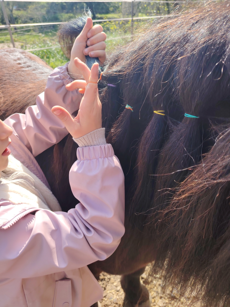 | Dire merci | bon ici les jours se suivent, j'ai remis vandalo avec son double brisure. La petite parenthèse enchantée avec le comfy a l'air de lui avoir remis les pendules a l'heure sur les embardées (vu que je l'arrétais quasi net avec le comfy) et par contre j'ai retrouvé un cheval plus smooth devant. On a fait deux belles séance par grand vent ce week end donc c'est cool. J'ai annulé mon cours avec Hubert samedi, je bosse et en plus j'ai la tete farcie. Je l'ai sorti dimanche en carrière au pas, elle a appris les déplacement latéraux par aspi en 10 m... ![]() Je vais essayer de la sortir quand je peux sur de petites séances comme ça. J'ai perdu en analyse sur le TAP donc ça me fait "du bien" aussi de réfléchir a comment aborder des exercices. J'aimerai bien arriver a faire des exercices d'equifeel (hors sautant), le 8 en lib etc... De toute façon c'est une fleche elle capte en 5 minutes ce que je lui demande, (sauf la jambette ça elle pige pas), le soucis c'est pas la comprenette c'est qu'elle monte en pression à mort, donc on va plutot etre dans un "travail" de gestion de soit (elle et moi), de notre énergie. Bah sinon samedi on a fait des tresses des tresses des tresses avec ma fille... Message édité le 01/04/25 à 09:06 |
