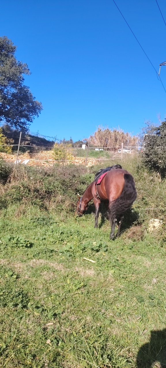 | Dire merci | il y a un magnifique soleil oui mais il fait absolument glacial, il fait 1° avec 70 km de mistral donc autant vous dire que ça piquotte sévère!! Ah les aplombs de Vandalo c'est vrai que ça fait pas rêver je l'appelle "pieds tordus" quand il m'énerve Après bon, je croise les doigts, il a 10 ans, des radios parfaites, des membres impeccables, zero molettes rien, bref il vit bien sa vie de pieds moches Son père était déjà un poil cagneux oui, de toute façon chez le PRE y en a beaucoup beaucoup qui sont cagneux, d'ailleurs pour la petite histoire, quand je l'ai fait confirmer j'avais demandé au maréchal un parage court pour atténuer visuellement le truc, vu qu'en fait c'est surtout l'évasement rapide en interne qui saute aux yeux. Bon le juge n'y a même pas fait cas et il m'avait dit que c'était très courant dans la race, qu'ils essayaient de corriger ça sans en faire une maladie. Mais bon, je conçois aisément que des aplombs non droits peuvent piquer les yeux, d'ailleurs ça me les pique régulièrement mais comme je peux rien y faire bah je vis avec |