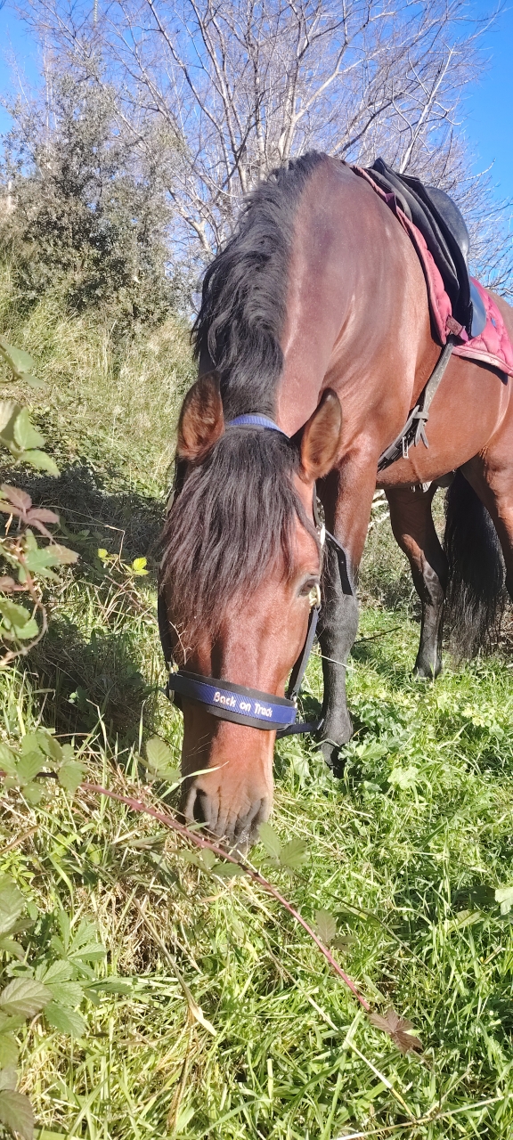 | Dire merci | Super séance de relâchement avec vandalo ce matin enfin sous le soleil Ça fait du bien mais du bien !! Rien de fou j'avais mis des portes et on s'est amusés a faire des variations entre les portes et avec quelques barres au sol toujours en gardant ce relâchement MAIS postérieurs engagés ![]() C'est allé super un cheval sympa et perméable comme il fallait. Juste sur des longueurs d'épaule en dedans où on a du s'ajuster car comme ça tire sur le postérieur interne il a changé de pied donc j'ai demandé moins, la main intérieure plus devant pour laisser plus de place tout en ralentissant l'épaule interne. Une fois que j'ai trouvé le bon réglage c'était pas mal. La nuque un peu moins souple mais pas mal. Du coup on a fini sur des grands cercles au trot loin devant avec des changements de pli pour déverrouiller cette nuque et assouplir un peu les épaules. Avec son nouveau licol back on track de noel, c'était plus que l'heure l'ancien était cuit. ![]() |