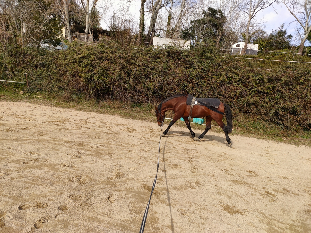 | Dire merci | retour sur une belle semaine de vacances, alors on a continué les balades avec Takhan en liberté qui adore ça (et moi aussi). Il est super sage et il répond vraiment très bien au rappel. Ca fait maintenant 1 mois qu'il est pieds nus et il marche super bien y compris dans la guarrigue. Je rape toutes les semaines pour entretenir et franchement nickel. si bien que je peux meme pas aller faire une pause technique toute seule Donc je suis super contente, il se refait un dos et du fond tranquillement. ![]() ![]() Il écoute tellement bien que j'ai fini par tout enlever... Sinon Vandalo a super bien bossé aussi. On a dans la boite les serpentines 3 boucles au galop ![]() Puis pour rien gâcher le boulot sur la liberté des épaules au trot moyen avance bien, je vous laisse en juger. Faudrait que je fasse un avant/après sur la qualité du trot. Mais je suis plutot contente de notre travail hivernal Vidéo en toute fin de séance, donc cheval un peu cuit mais on voit quand meme : Alors je le garde un peu fermé devant pour l'instant car il a besoin d'un petit peu de soutien devant mais c'est en cours de travail. |