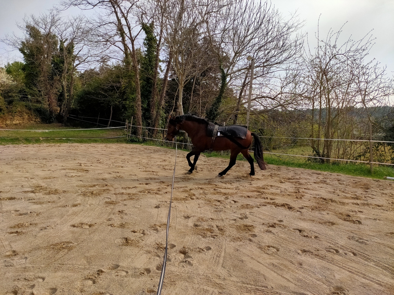 | Dire merci | Bon aujourd'hui on a testé le gadget du diable. Bon première constatation mon 5 ans est vraiment une perle. Pas une seule réaction quand je lui ai mis la sangle élastique aux fesses. Deuxième constatation : le bazar est intéressant au pas car il rappelle gentiment à l'ordre. Donc "yaka" laisser ouvrir devant et continuer a travailler normal en surveillant les postérieurs au regard et a la chambrière et l'élastique c'est le petit plus qui permet de pas en rater une. Donc top séance de longe sous un beau soleil et un temps quasi printanier. ![]() Même au galop c'est pas mal, il reste du coup tout le temps engagé sans être contraint. ![]() Après j'ai mis relativement lâche pour pas générer l'effet inverse et puis ne pas laisser l'élastique faire le job sans demander sois même. Voilà bon du coup je longerai de temps en temps avec cette affaire. |