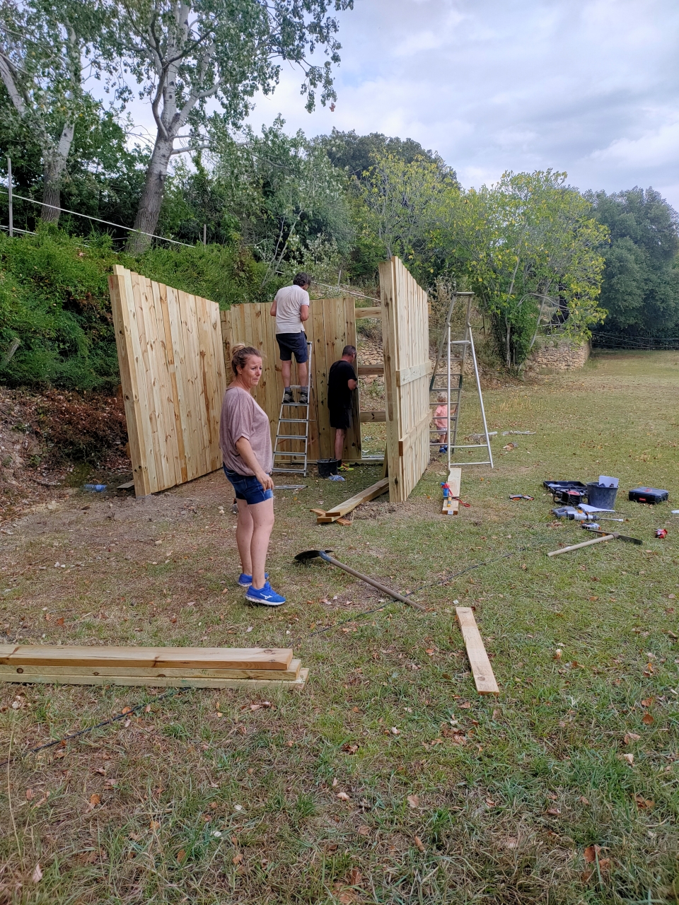 | Dire merci | Oui c'est un 3*3 avec une avancée d'1m20. Les poteaux sont dans des ancres anti tempête 1m20. Aucun bois ne touche le sol. Les planches sont en 40. Franchement très agréablement surprise. Du coup je suis HS pour monter ce soir j'ai même pas envie ![]() |