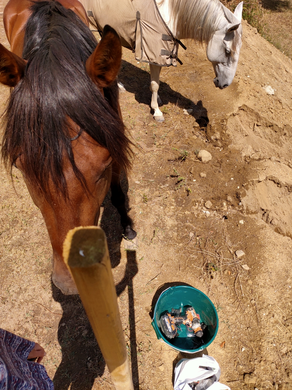 Surtout le merveilleux piquet en bois de la porte d'un des paddocks que j'ai planté complètement de travers.