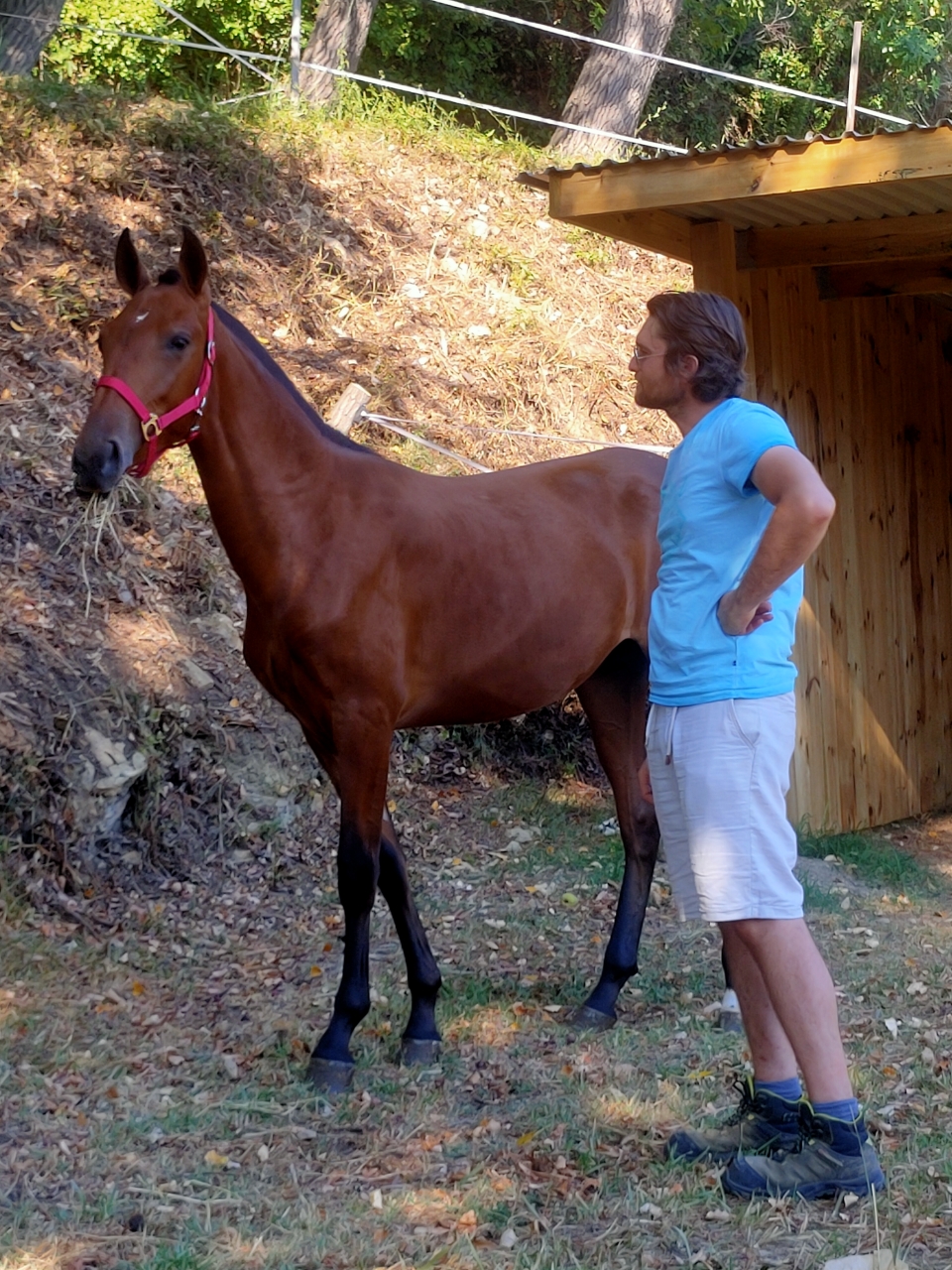 | Dire merci | Elle est très douce avec les humains et encore plus avec les enfants oui. Très réfléchie, pas du tout fébrile, bref un mental comme je les aime. . Après les enfants c'est top ça crie, ça bouge les bras dans tous les sens, ça fait des choses complètement irréfléchies donc ça lui montre qu'on peut être complètement gesticulant a côté d'elle sans pour autant que ce soit pour elle. Deuxième nuit toute seule, elle est sage mais elle s'ennuie, vivement demain que le copain arrive, entre vandalo et elle je peux plus faire un pas dehors sans qu'on m'appelle Pour les crins honnêtement moi aussi je n'aime pas et mes poulains seront probablement pas rasés j'y vois pas l'intérêt. Morphologiquement elle le dos assez long mais souple, de jolis jarrets et une épaule pas trop droite, elle prend bien le temps de dérouler ses foulées. Après 14 mois enfin les poulains c'est quand même souvent ingrats pendant un petit moment ![]() Sauf ses jolis yeux Ce matin ma coach vient, vandalo arbeit poney ![]() |