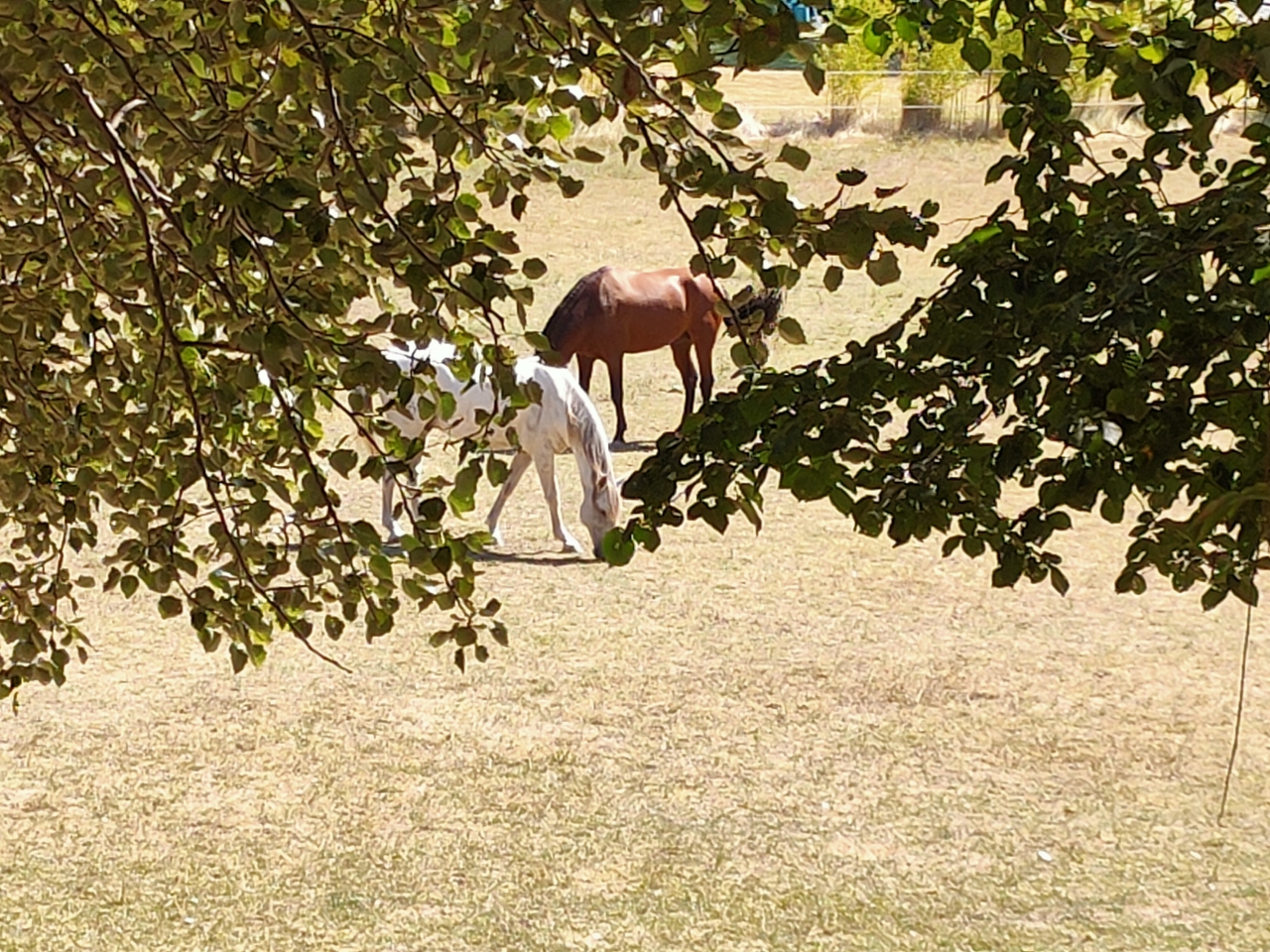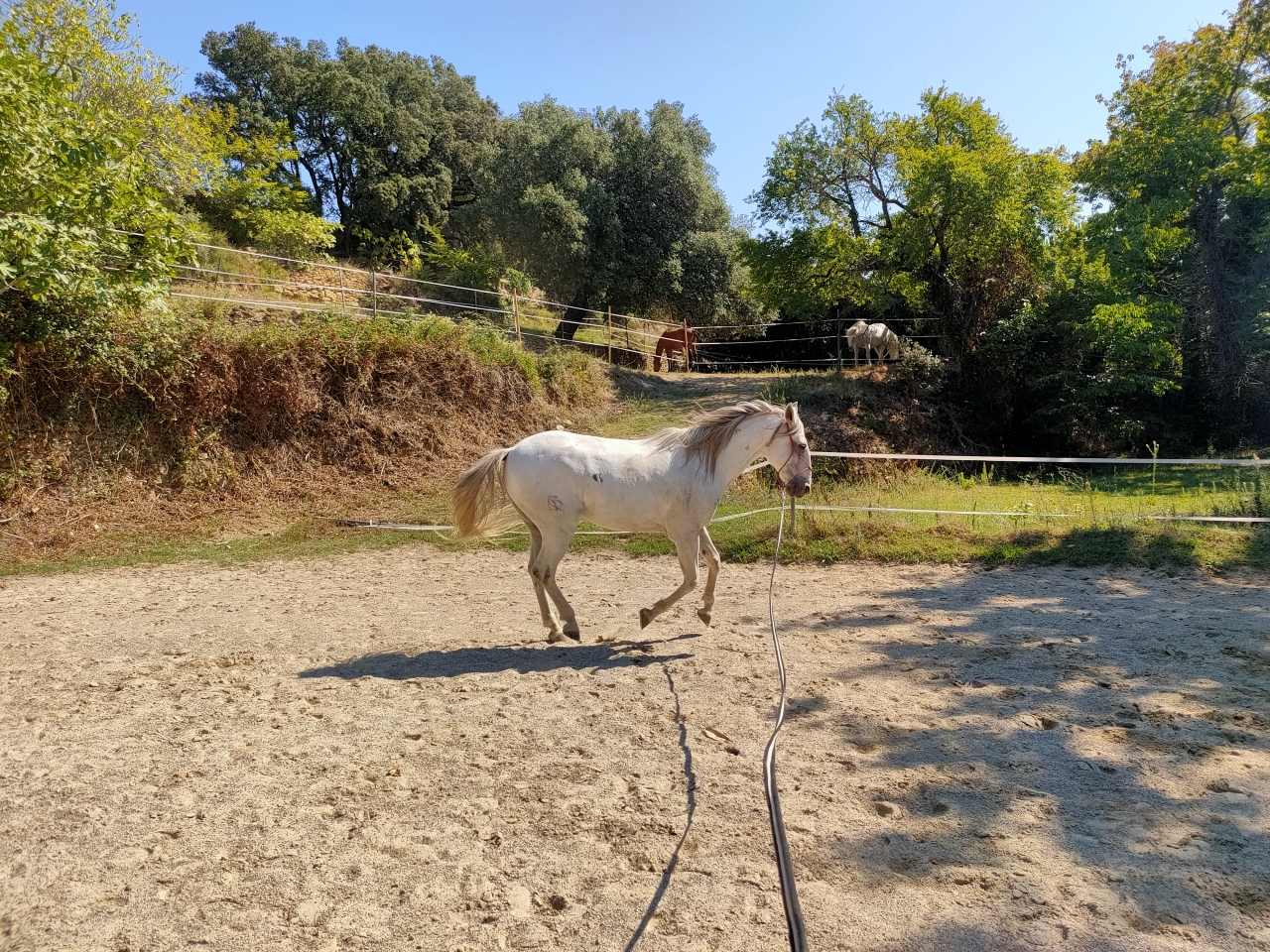 | Dire merci | Le copain est arrivé ce matin : Je les entends pas, intégration parfaitement réussie , cela dit le camargue a vécu longtemps en troupeau il est donc parfaitement "codé". Voilà vandalo fait un peu le long de la clôture mais il se met pas en transe, ça devrait se tasser. |