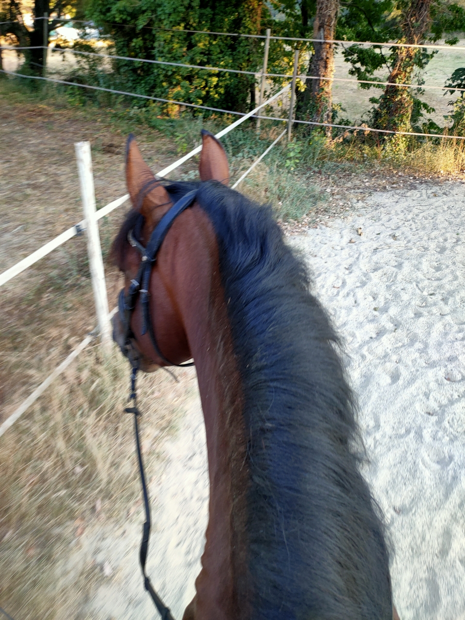 c'était d'ailleurs le but de le manoeuvre. Un cheval comme lui si studieux qui un jour clairement n'arrive pas a s'y mettre bah on lui permet de s'exprimer dans une liberté surveillée ? et puis clairement, ça me fait marrer et je suis même contente qu'il s'exprime lui qui leve jamais un cul. Que dirais tu si tu me voyais lui permettre de copieusement m'embarquer dans un champ? l'important c'est que quand je sonne la fin de la récré il revienne en 10 foulées. Ce qu'il fait.