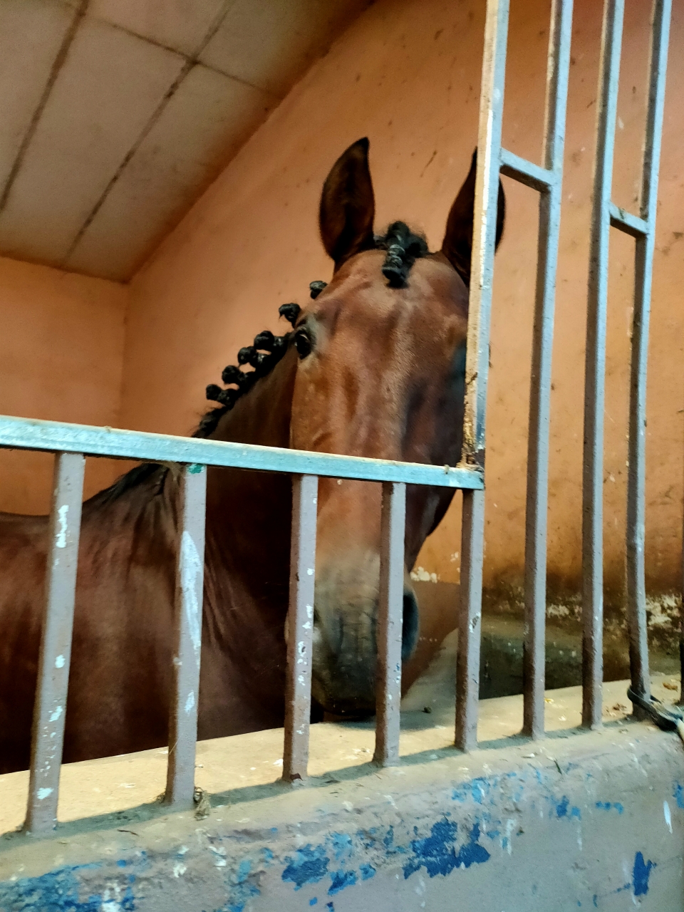 grosse séance avec ma coach, piste intérieure trot de travail, transition ai pas et on repart au trot dans l'idée du passage sans le demander, objectif partir bien de derrière le garrot remonte et gagner en expression dans le trot des la première foulée. Il est marrant il devient dresse au poildeuk, je mets trop la jambe intérieure dans le départ ça part au galop, je dois vraiment le monter concentrée et les fesses très "dedans". C'est flagrant avec lui il faut une assiette très profonde là où avec takhan j'étais toujours plus ou moins sur les cuisses eut égard à ses CPE T15 T16.