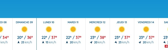 | Dire merci | Punaise ça va être la fournaise par chez vous.... Comparé à l'année dernière on va être relativement épargnés, on monte a 32 et après ,ça retombe a 25 couvert . Compassion |