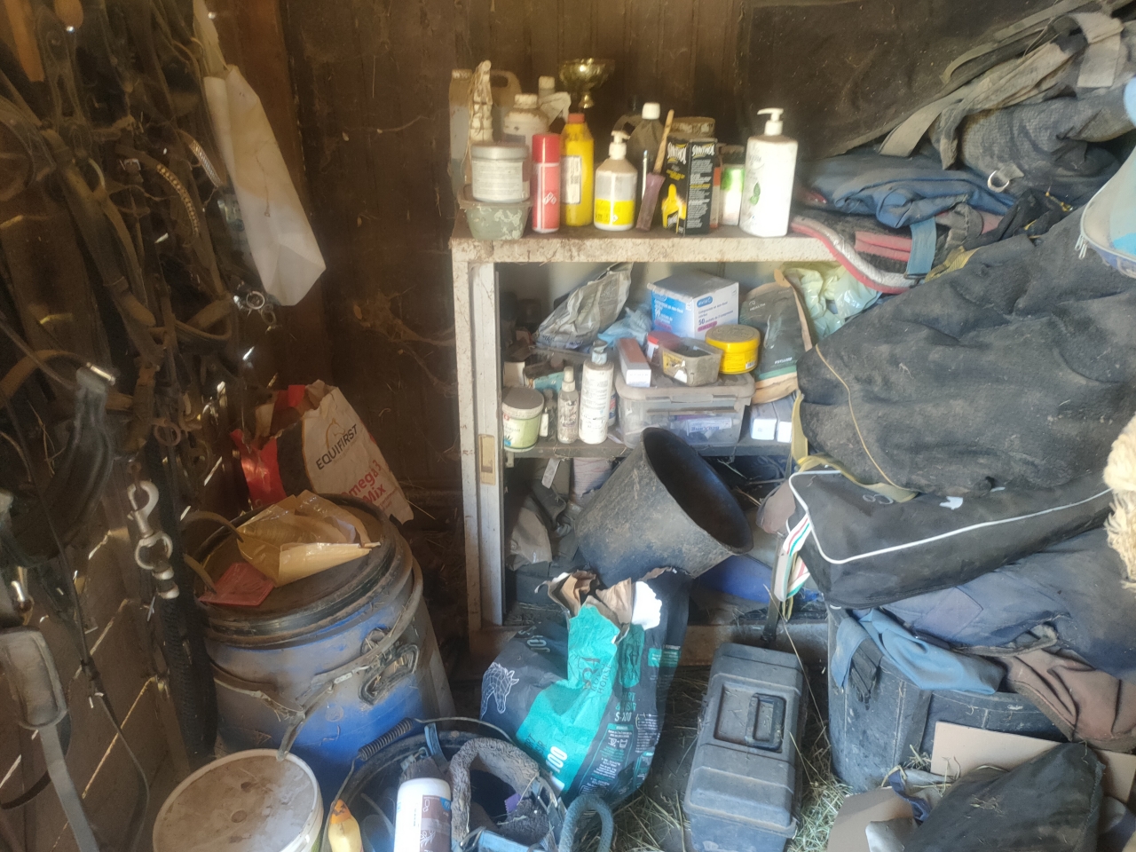 DéconnectéDire merci | j'ai voulu faire un grand nettoyage de la sellerie, manque de bol il y a un nid de guêpes qui s'y est installé donc une bonne partie est sortie et triée et maintenant je n'ose plus rentrer |