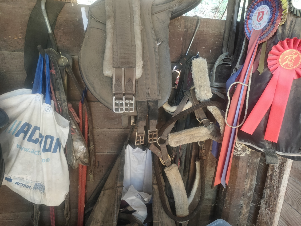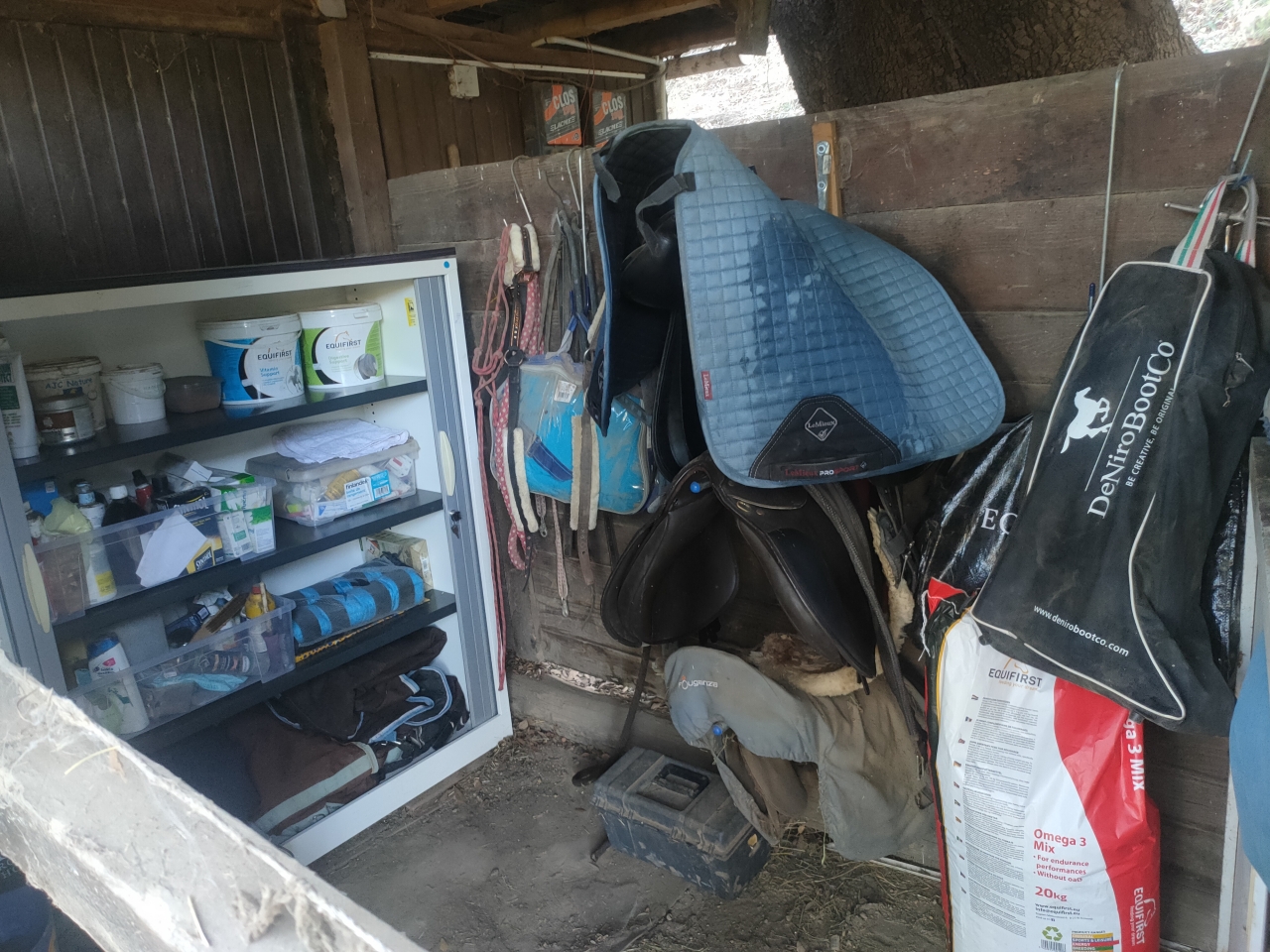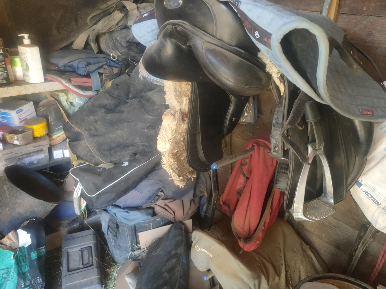 | Dire merci | whaou sacré rangement ! J'avoue qu'il est grand temps aussi que je m'installe une vraie sellerie car j'en ai de partout ! Et juste MDR le tapis Rock jpp comme il est moche Pour les bottes, moi au quotidien j'ai des deniro mais demi mesure toutes simples noires et franchement elles tiennent pas mal, mais je ne monte pas intensivement En tout cas, elles tiennent mieux que mes deniro sur mesure que j'ai du faire réparer. |