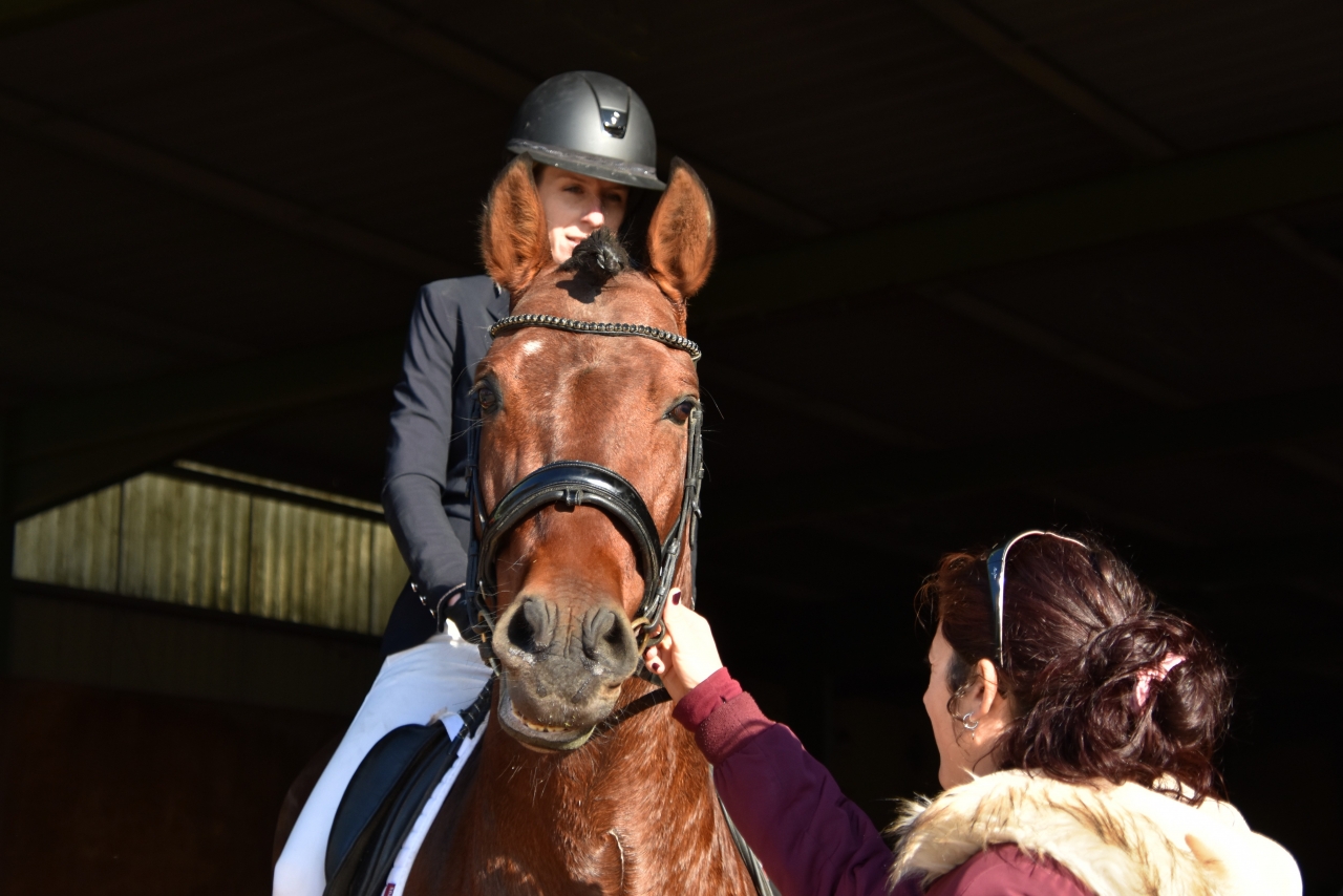 | Dire merci | Globalement avec ce type de chevaux ( assez différent des CV où je suis bien et que je monte habituellement) j’ai un souci de timing dans la main car je Mollit je pense globalement trop tôt au lieu de resserrer un petit peu le cadre pour donner plus de tonicité dans le dos. |